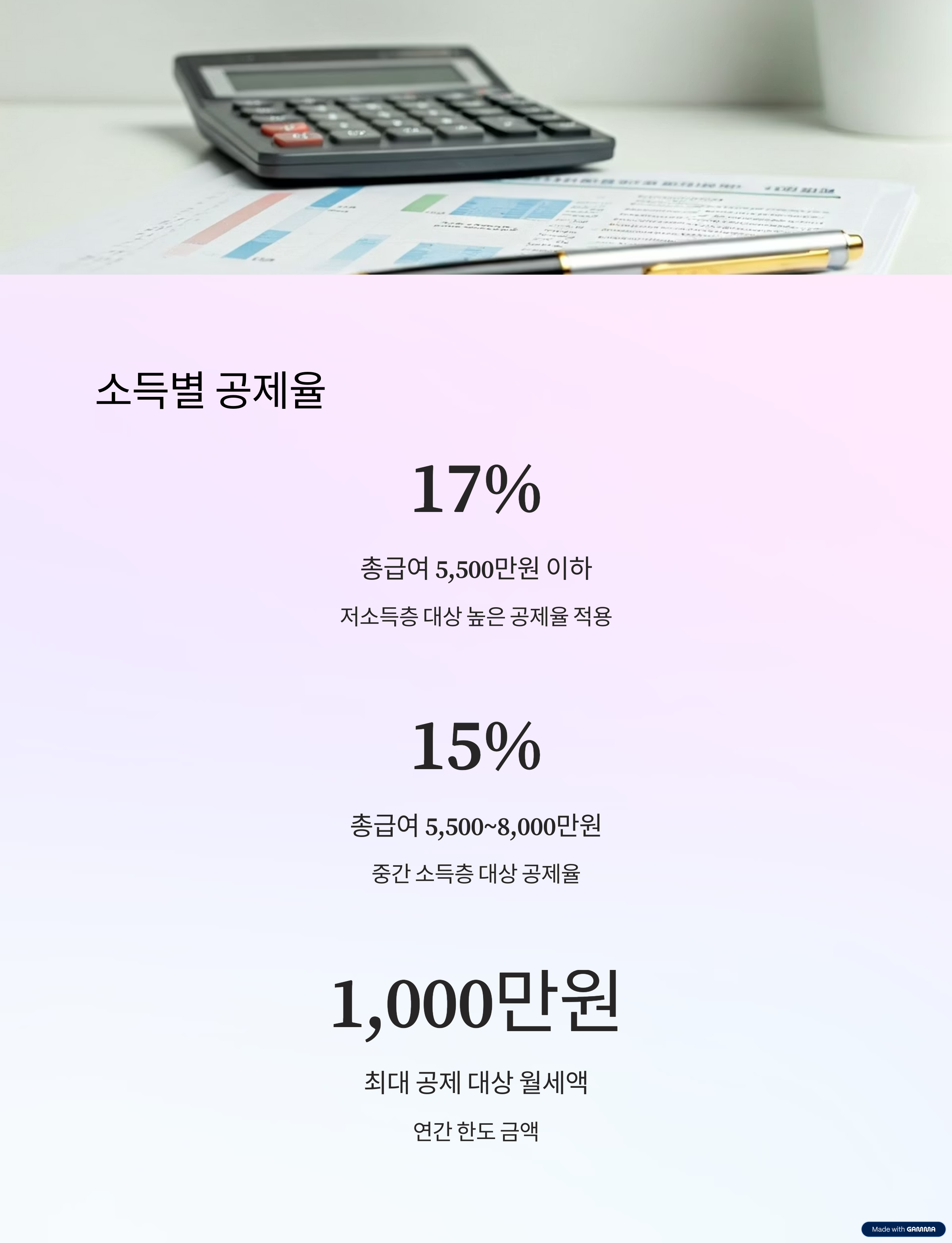 - 공제 대상 월세액은 연간 최대 1,000만원까지만 인정