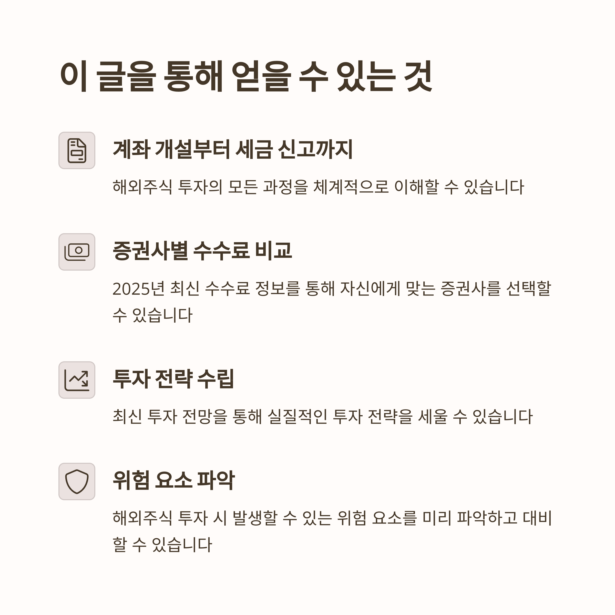 - 목표 설정: 해외주식 투자를 통해 이루고자 하는 명확한 목표를 설정하세요 (예: 장기 자산 증식, 배당 수익, 포트폴리오 다변화 등)