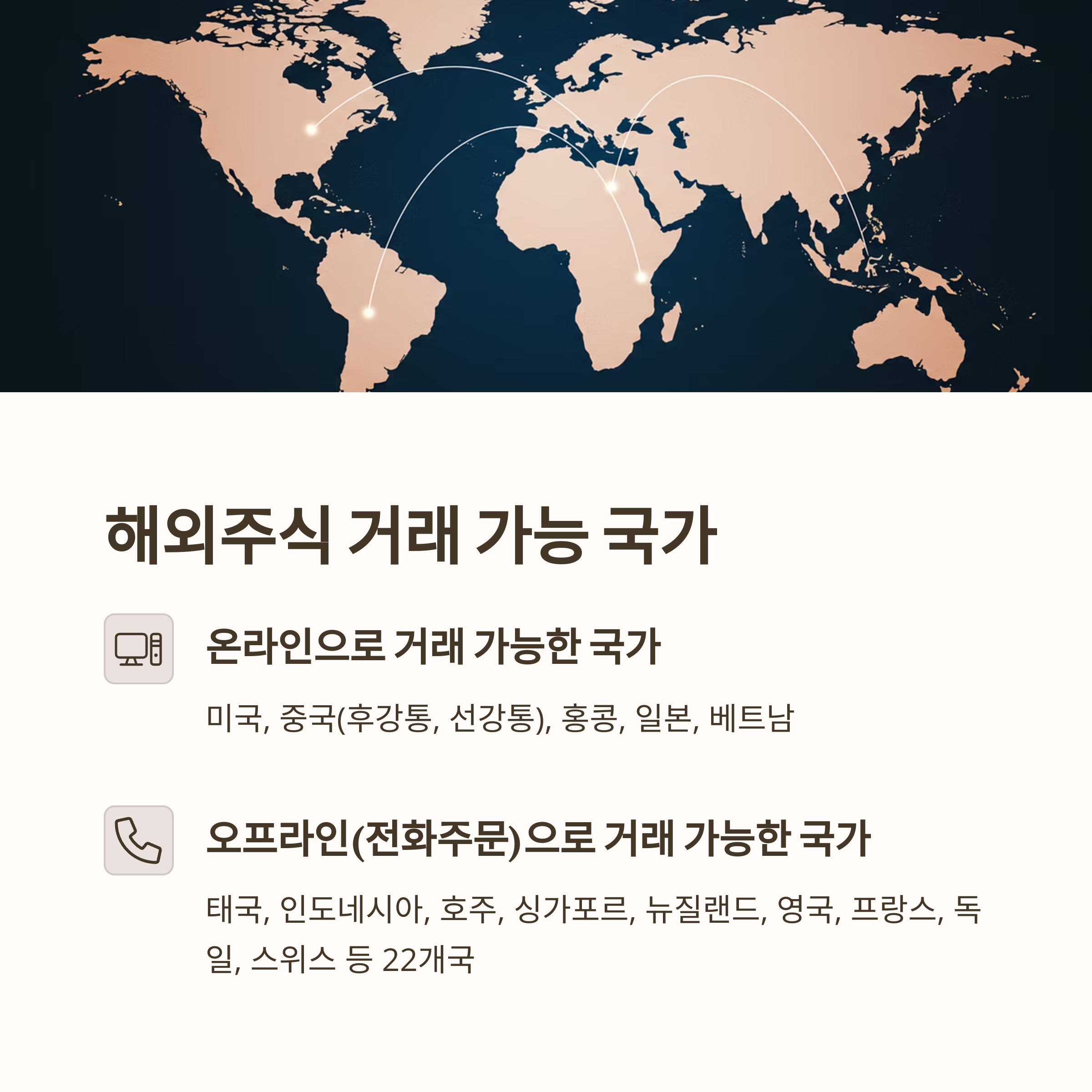 - 해외주식 주문: 온라인 매체 또는 전화로 주문 가능