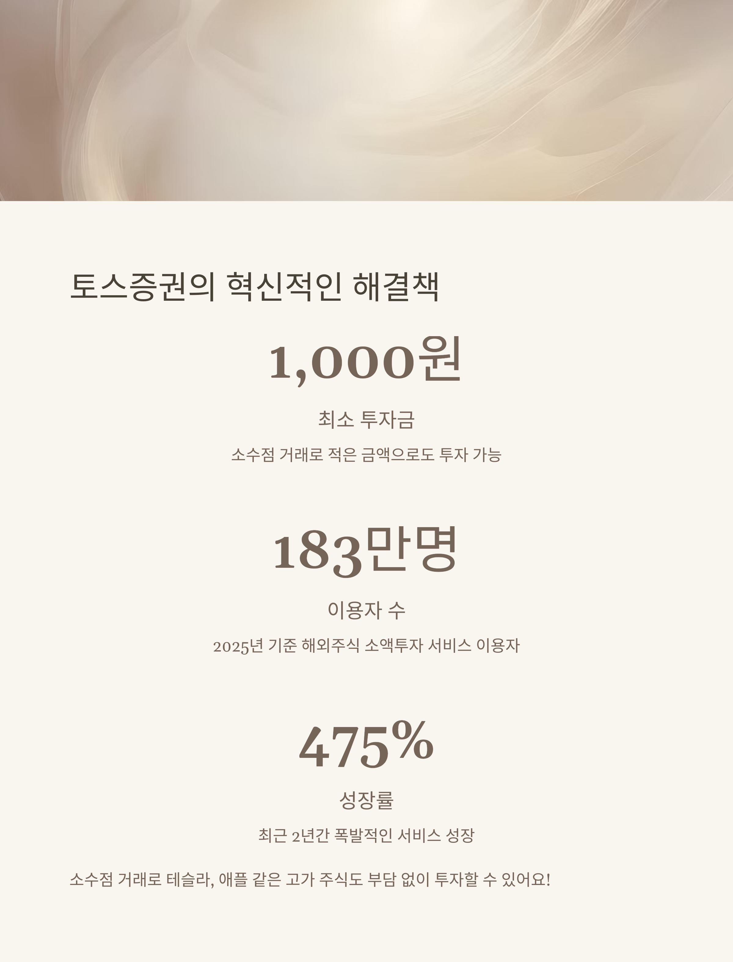 토스증권의 해외주식 소액투자 서비스는 이러한 문제를 해결해주는 완벽한 솔루션입니다. 2025년 기준으로 이미 183만 명 이상이 이용하고 있으며, 최근 2년 동안 475%의 폭발적인 성장률을 보인 서비스입니다.