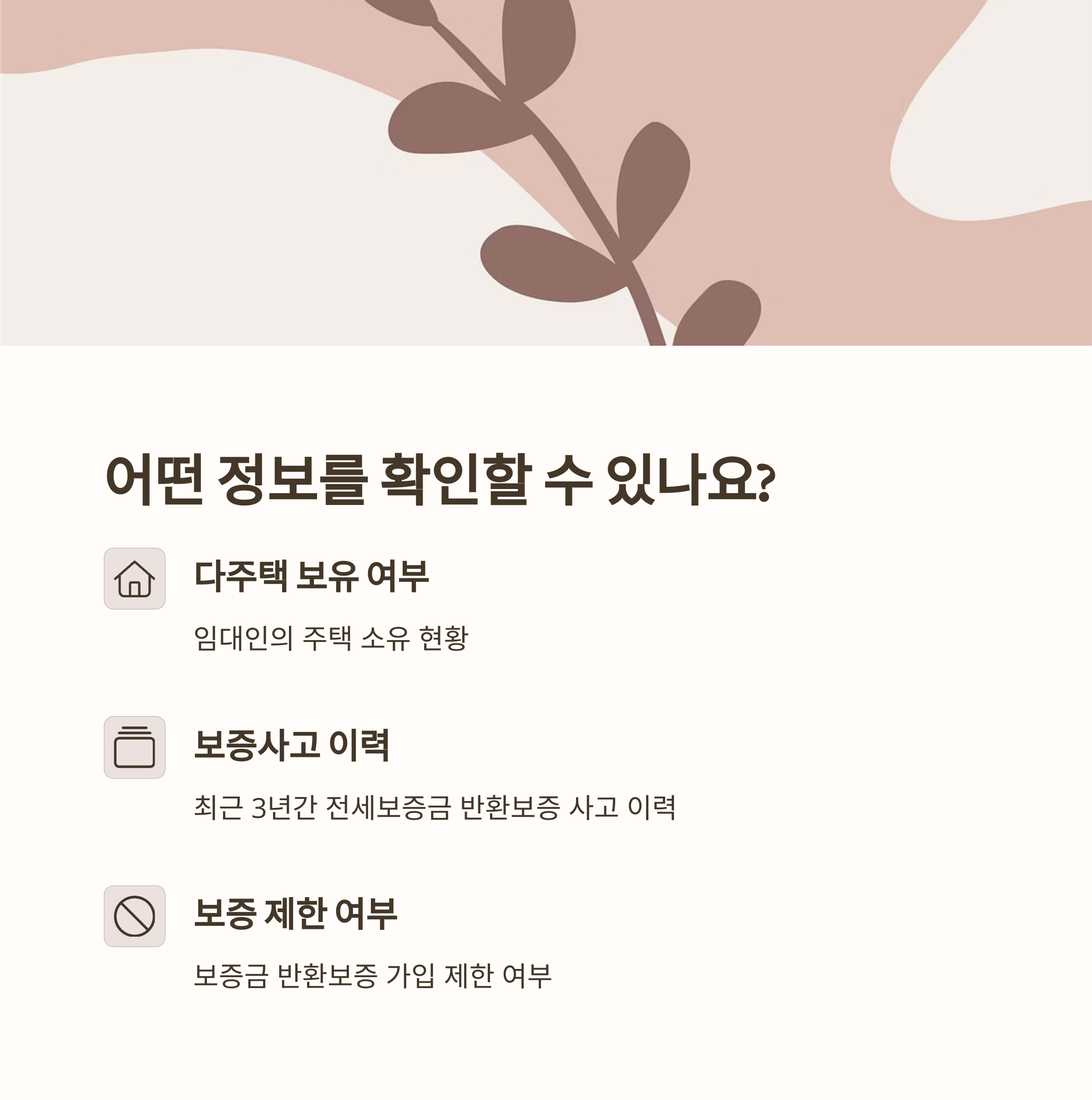 | 조회 정보 | 제한적(보증 가입 여부 등) | 확대(다주택 여부, 보증사고 이력 등) |
