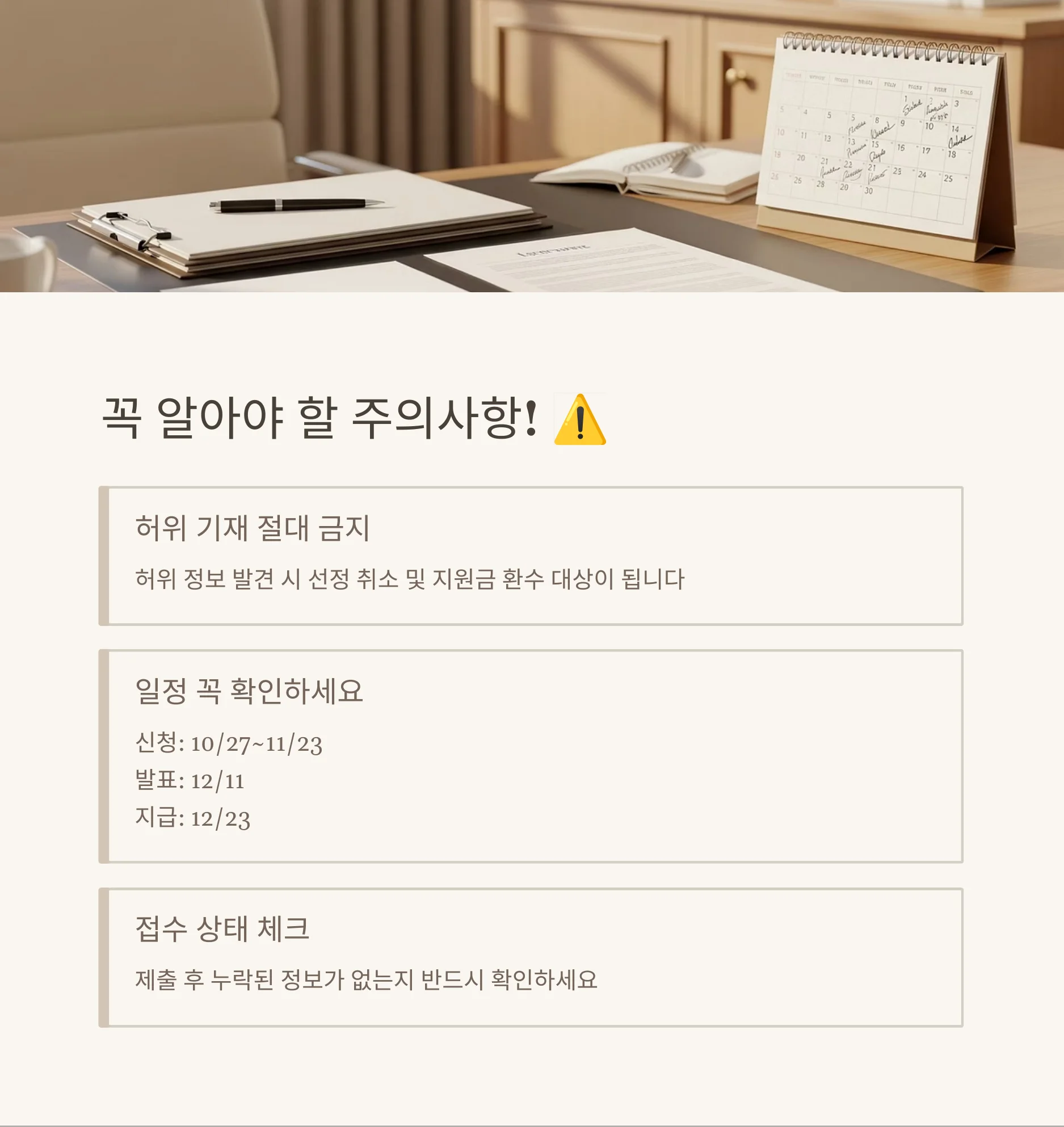 Q: 지원금 신청 시 주의해야 할 점은 무엇인가요?