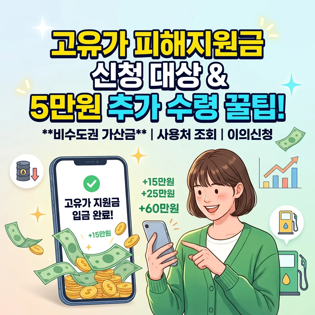 치솟는 물가와 기름값 부담에 생활비 고민이 많으셨죠? 이번 고유가 피해지원금은 신청 대상과 주소지에 따라 지원 금액이 달라져 꼼꼼한 확인이 필수입니다. 단순히 신청만 하는 것이 아니라, 본인에게 최적화된 수령 수단을 선택하고 비수도권 거주자라면 5만 원을 더 챙기는 전략이 필요합니다. 이 글에서는 신청 요일제부터 매출 30억 이하 사용처 조회법, 그리고 기간 내 잔액 환수를 피하는 알뜰 소비법까지 핵심 정보를 모두 담았습니다. 끝까지 읽고 당신이 받을 수 있는 지원금을 하나도 빠짐없이 확인해 보세요.