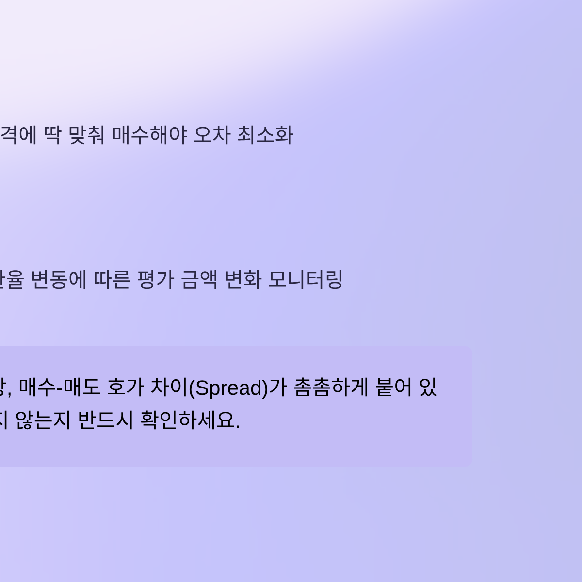 - [ ] LP 호가 확인: 매수-매도 호가 차이(Spread)가 촘촘하게 붙어 있는가?