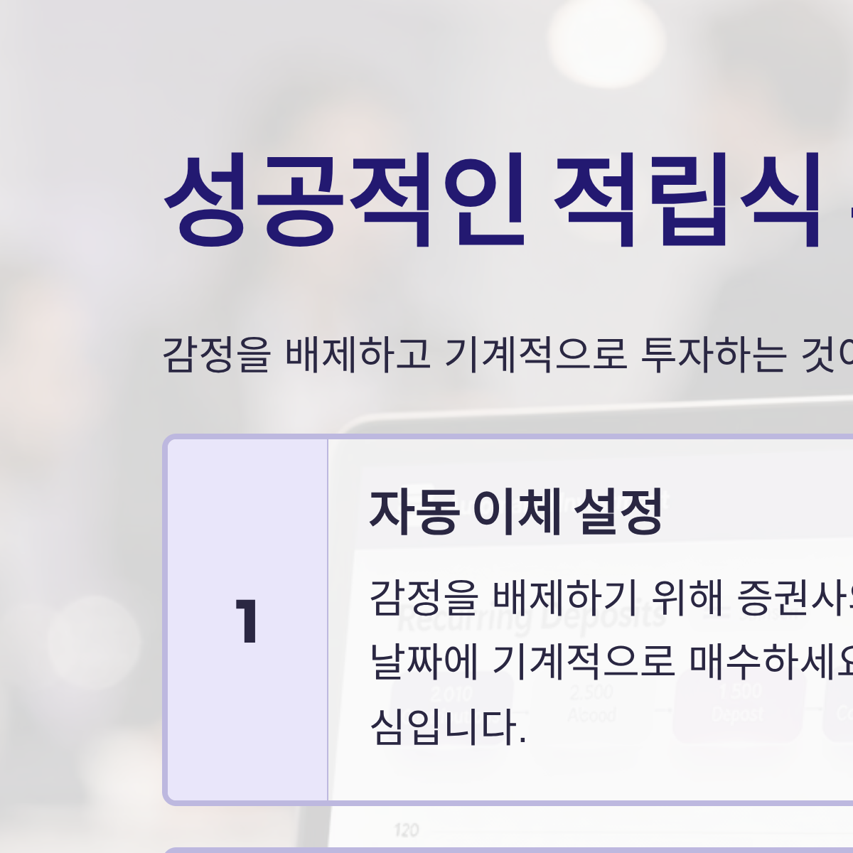 * 자동 이체 설정: 감정을 배제하기 위해 증권사의 '주식 모으기' 기능을 활용해 정해진 날짜에 기계적으로 매수하세요.