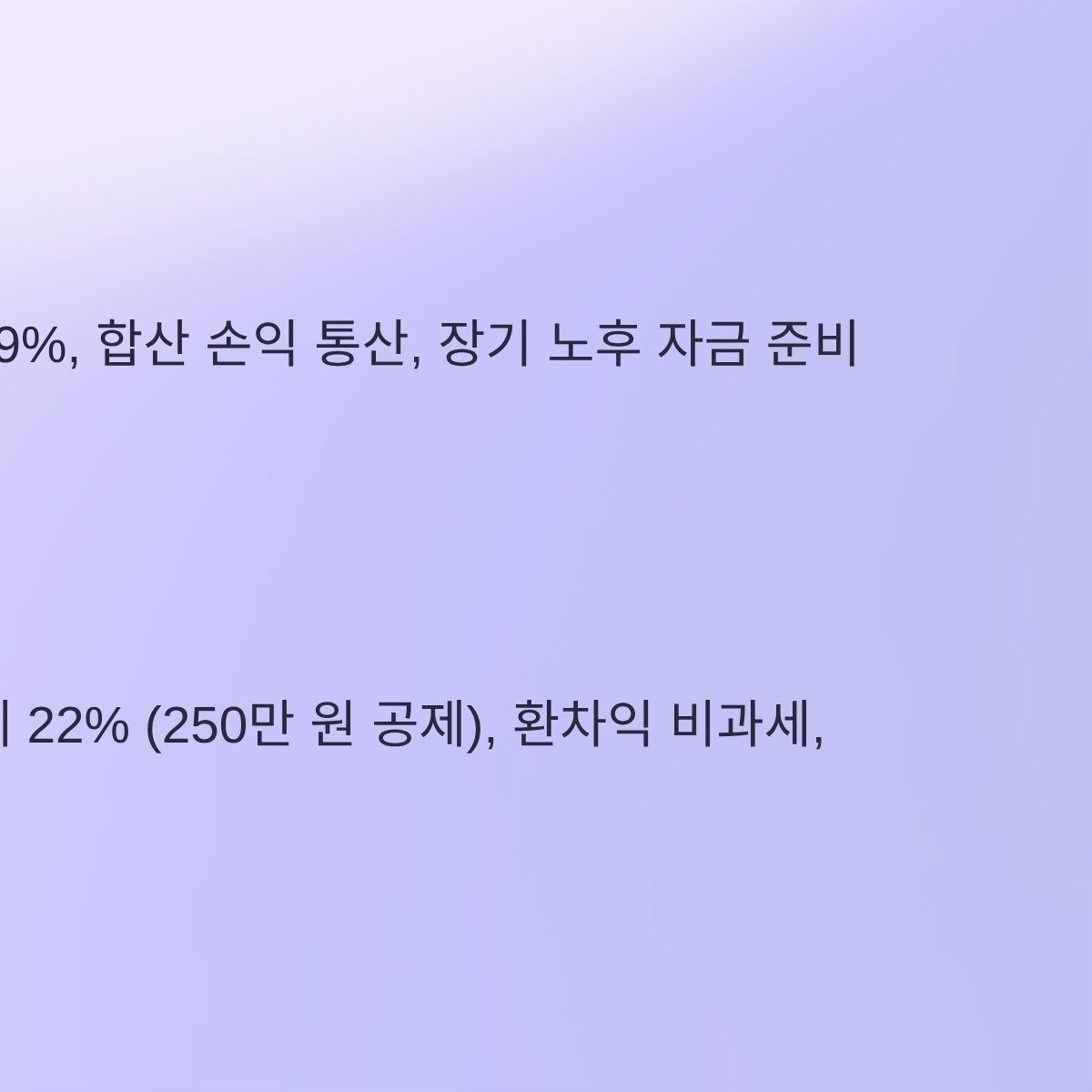 | 매매차익 과세 | 15.4% (배당소득세 처리) | 합산 손익 통산 후 절세 | 22% (양도소득세, 250만 원 공제) |