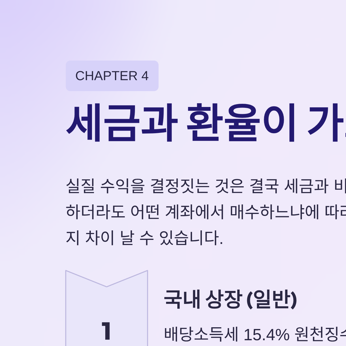 * 환차익의 비밀: 미국 직투 시 발생하는 환차익은 양도소득세 대상에서 제외되므로, 달러 강세기에 추가 수익을 세금 없이 가져갈 수 있습니다.