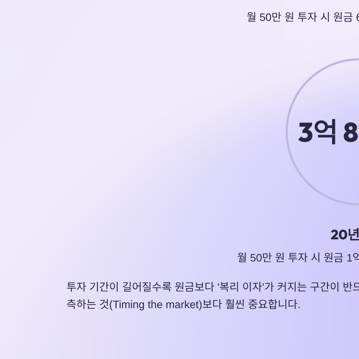 - 핵심 포인트: 투자 기간이 길어질수록 원금보다 '복리 이자'가 커지는 구간이 반드시 옵니다.