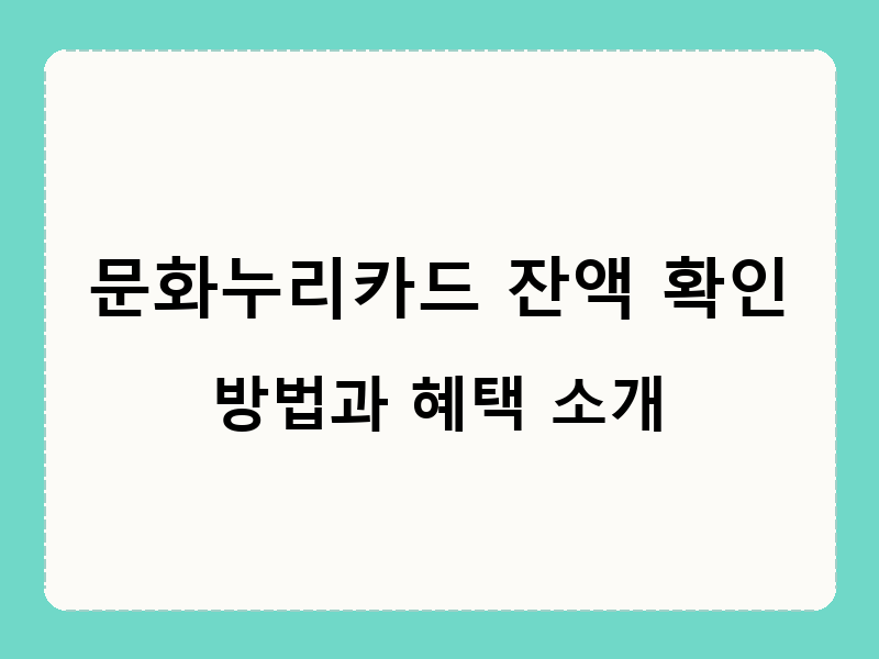 안녕하세요! 문화누리카드 사용자분들을 위해 잔액 확인부터 다양한 혜택 활용까지 상세히 소개해드립니다. 지금부터 함께 즐거운 문화생활을 누리는 방법을 알아봐요!