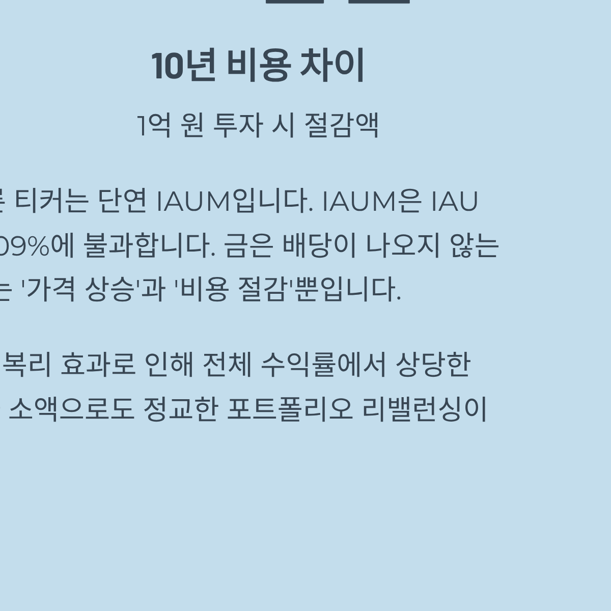 - [ ] 장기 보유 시 수수료가 낮은 IAUM(0.09%)을 선택해 세전 수익률을 높였는가?
