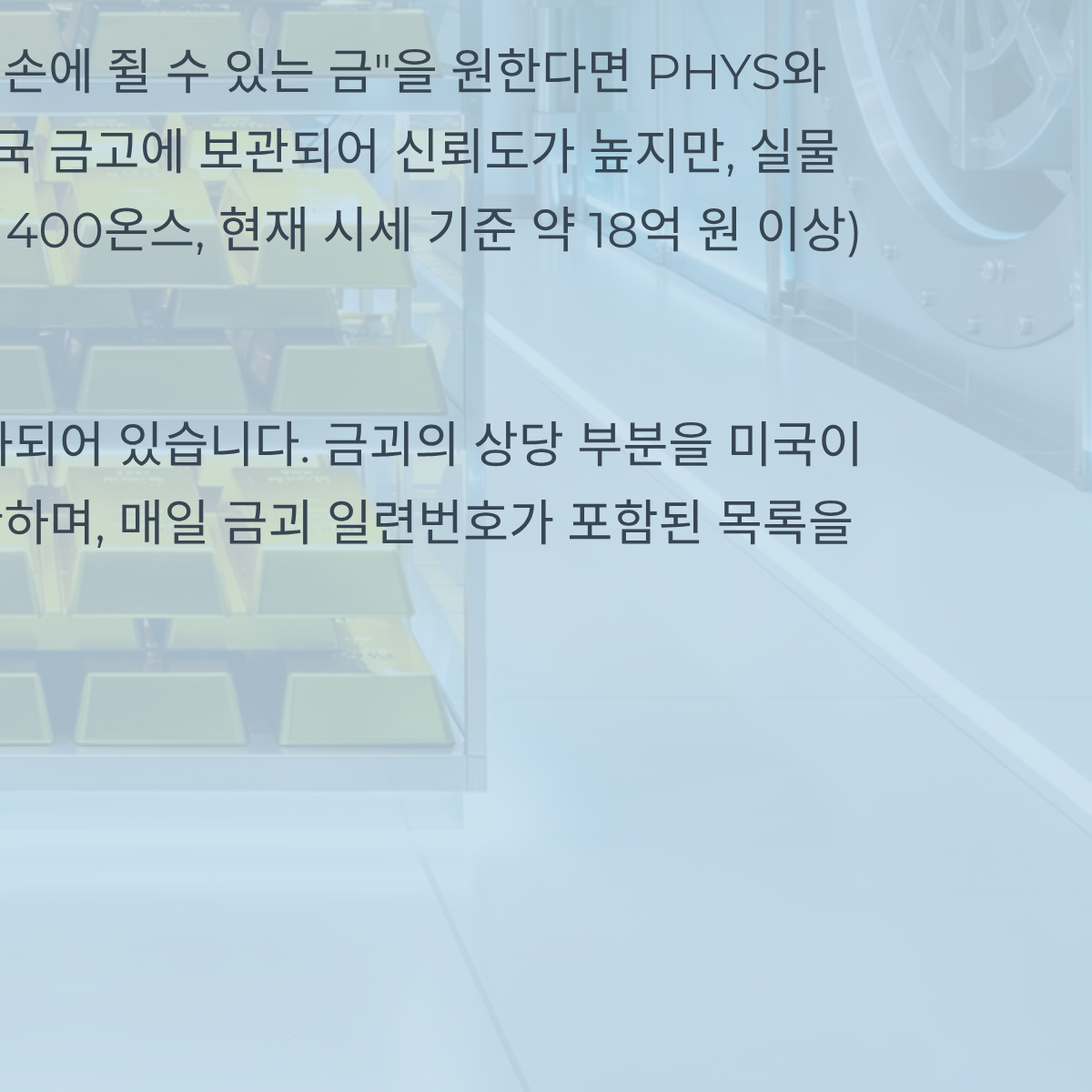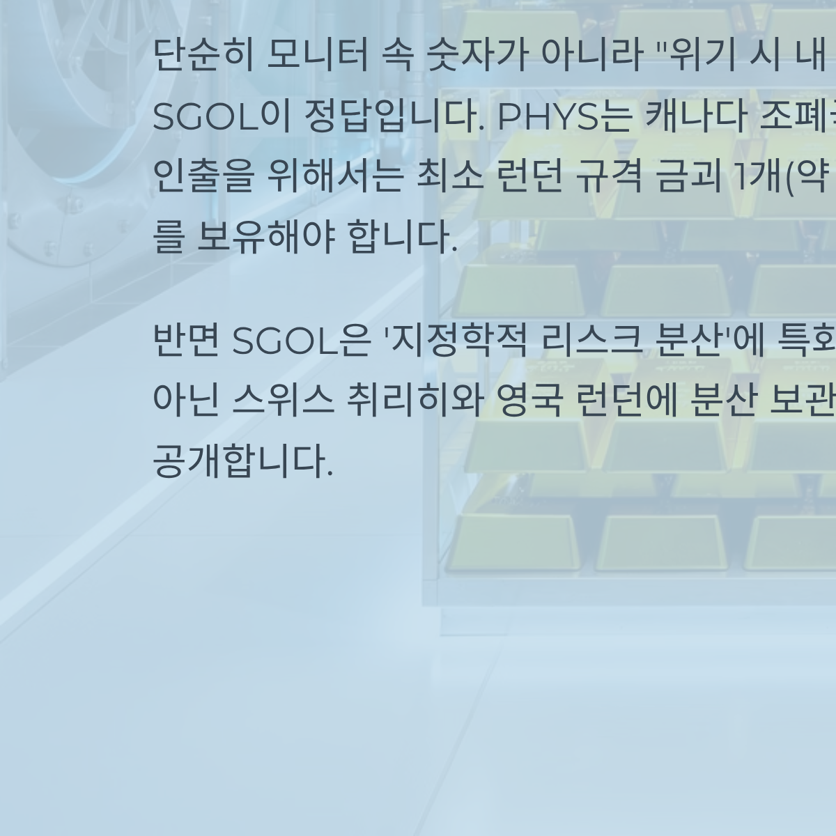 내 금은 어디에? 실물 인출 PHYS와 스위스 금고 SGOL의 신뢰도