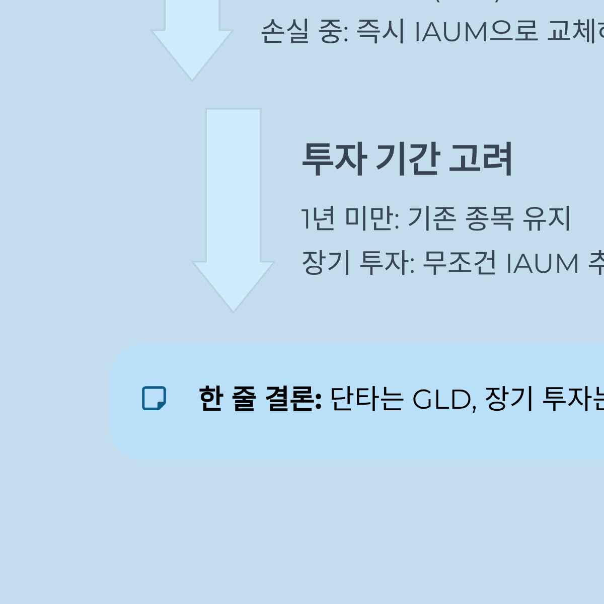 - 아니오(손실 중) → 손실 확정 후 즉시 IAUM으로 갈아타기 (절세 효과 발생) - 투자 기간이 1년 미만인가?