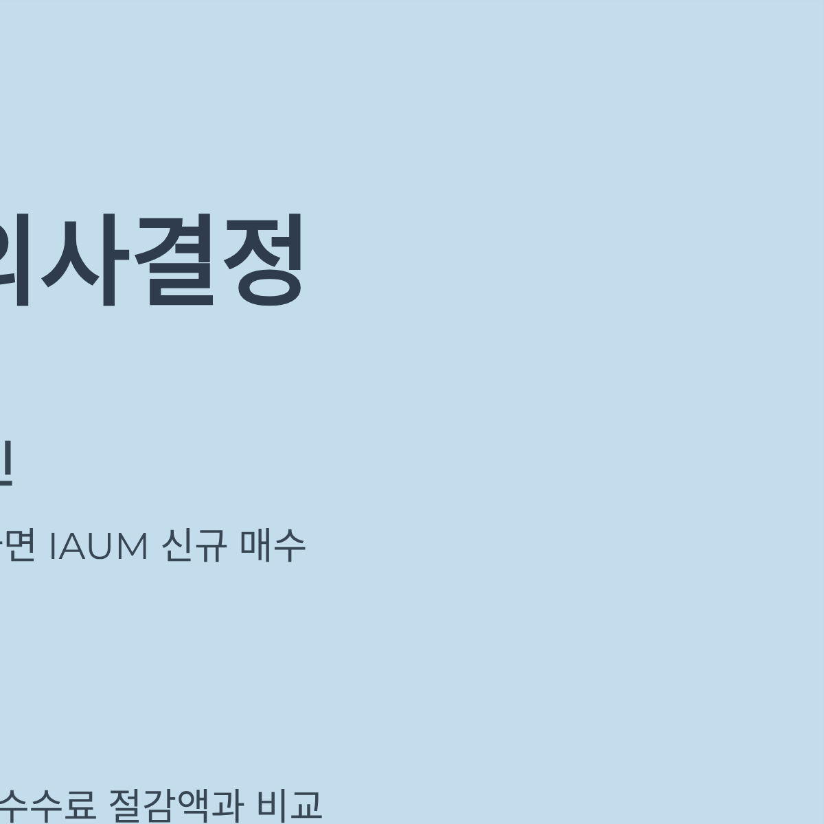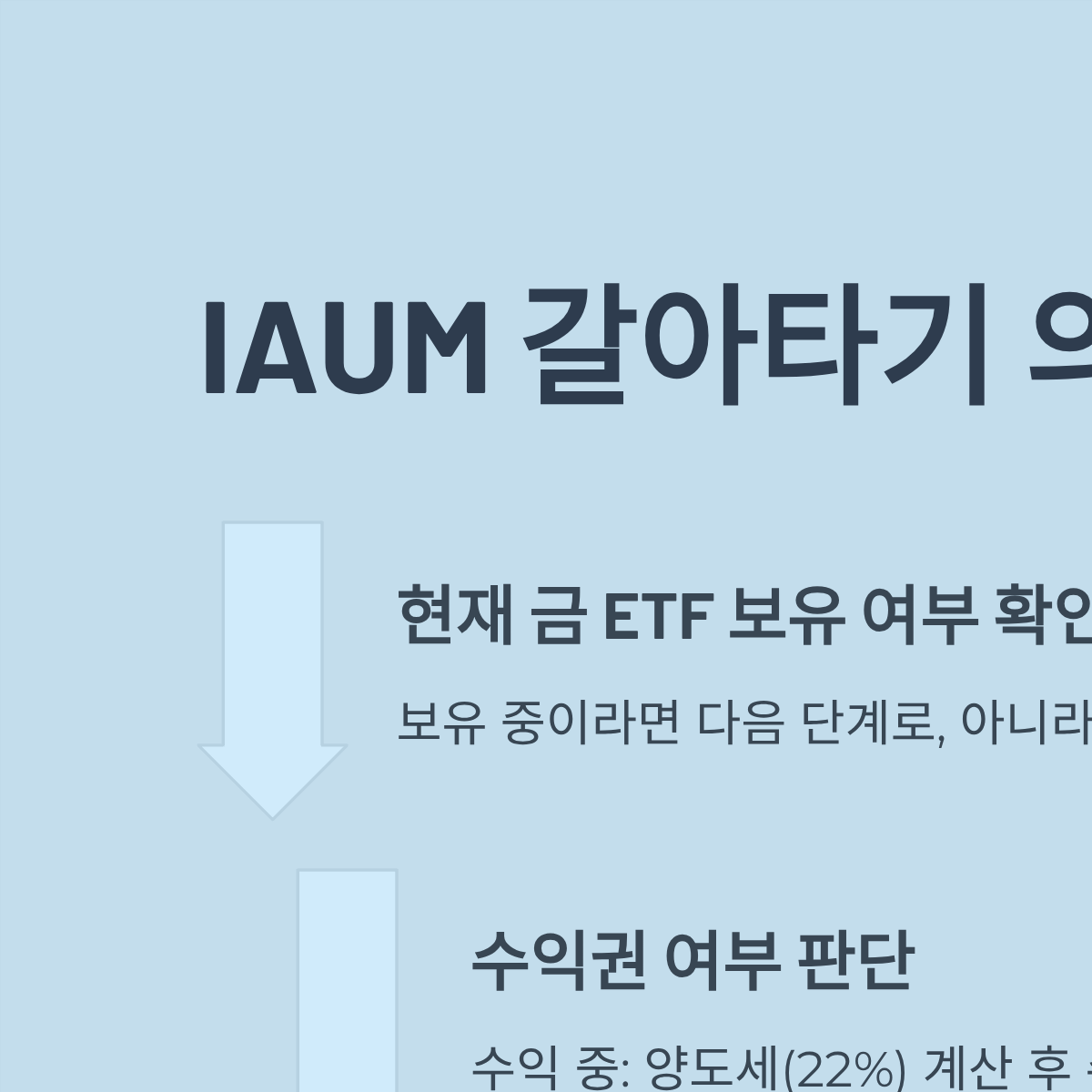 - 예(수익 중) → 양도소득세(22%) 계산 후, 세금보다 수수료 절감액이 크다면 IAUM으로 교체
