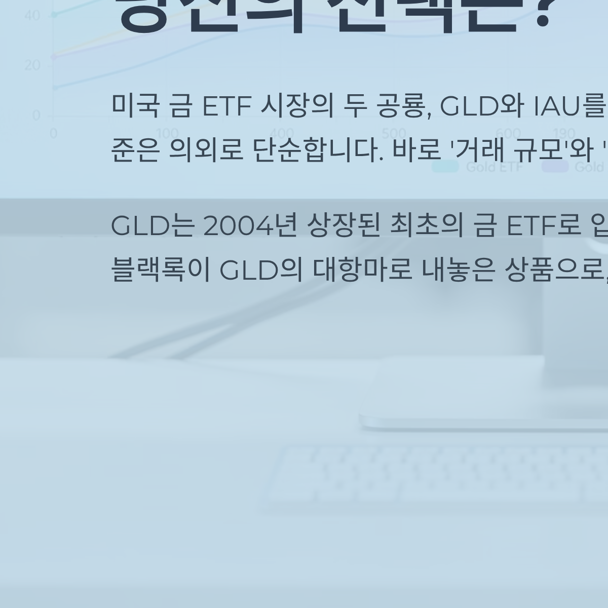 미국 금 ETF 시장의 두 공룡, GLD와 IAU를 두고 고민하는 분들이 많습니다. 제가 직접 대규모 자산을 운용하는 분들과 상담해 보면, 선택의 기준은 의외로 단순합니다. 바로 '거래 규모'와 '운용 비용'의 싸움입니다. GLD는 2004년 상장된 최초의 금 ETF로, 압도적인 유동성(Liquidity)을 자랑합니다. 반면 IAU는 블랙록(BlackRock)이 GLD의 대항마로 내놓은 상품으로, 상대적으로 저렴한 수수료가 강점입니다.