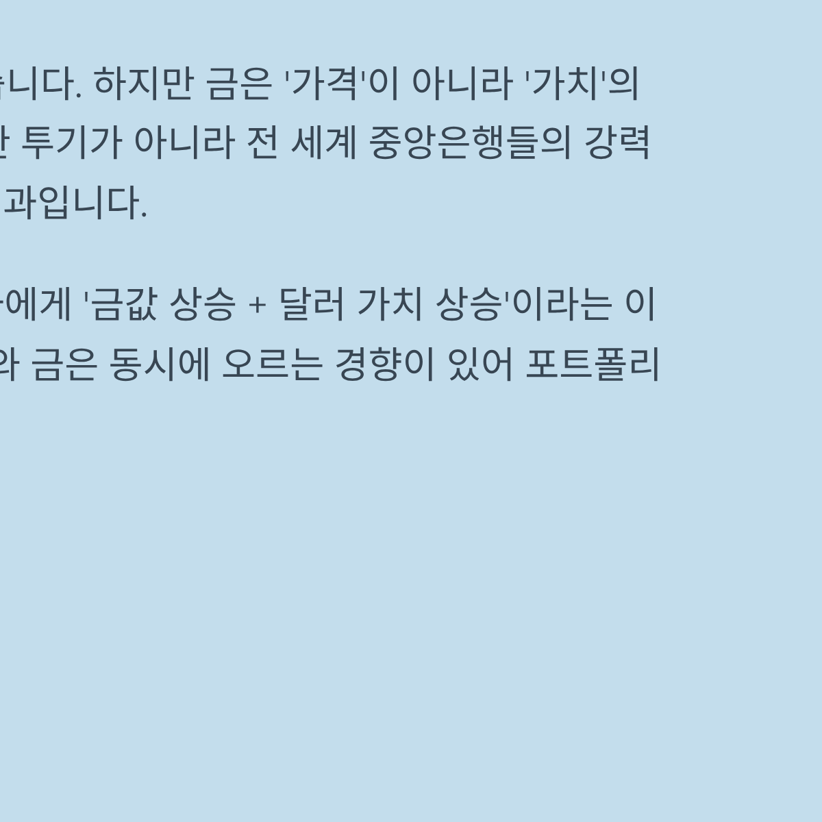 | 통화 가치 | 법정 화폐 신뢰 하락 | 실물 자산인 금의 상대적 가치 부각 |