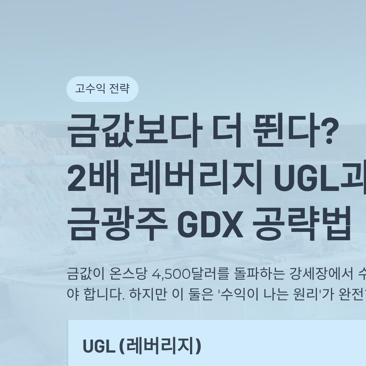 금값보다 더 뛴다? 2배 레버리지 UGL과 금광주 GDX 공략법