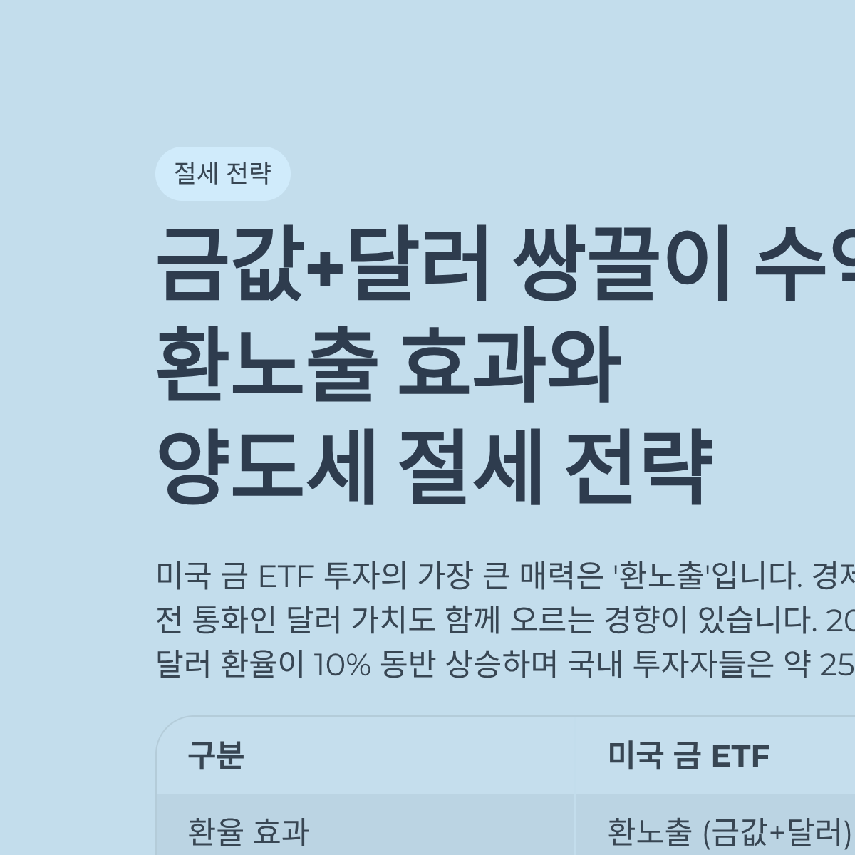 금값+달러 쌍끌이 수익, 환노출 효과와 양도세 절세 전략