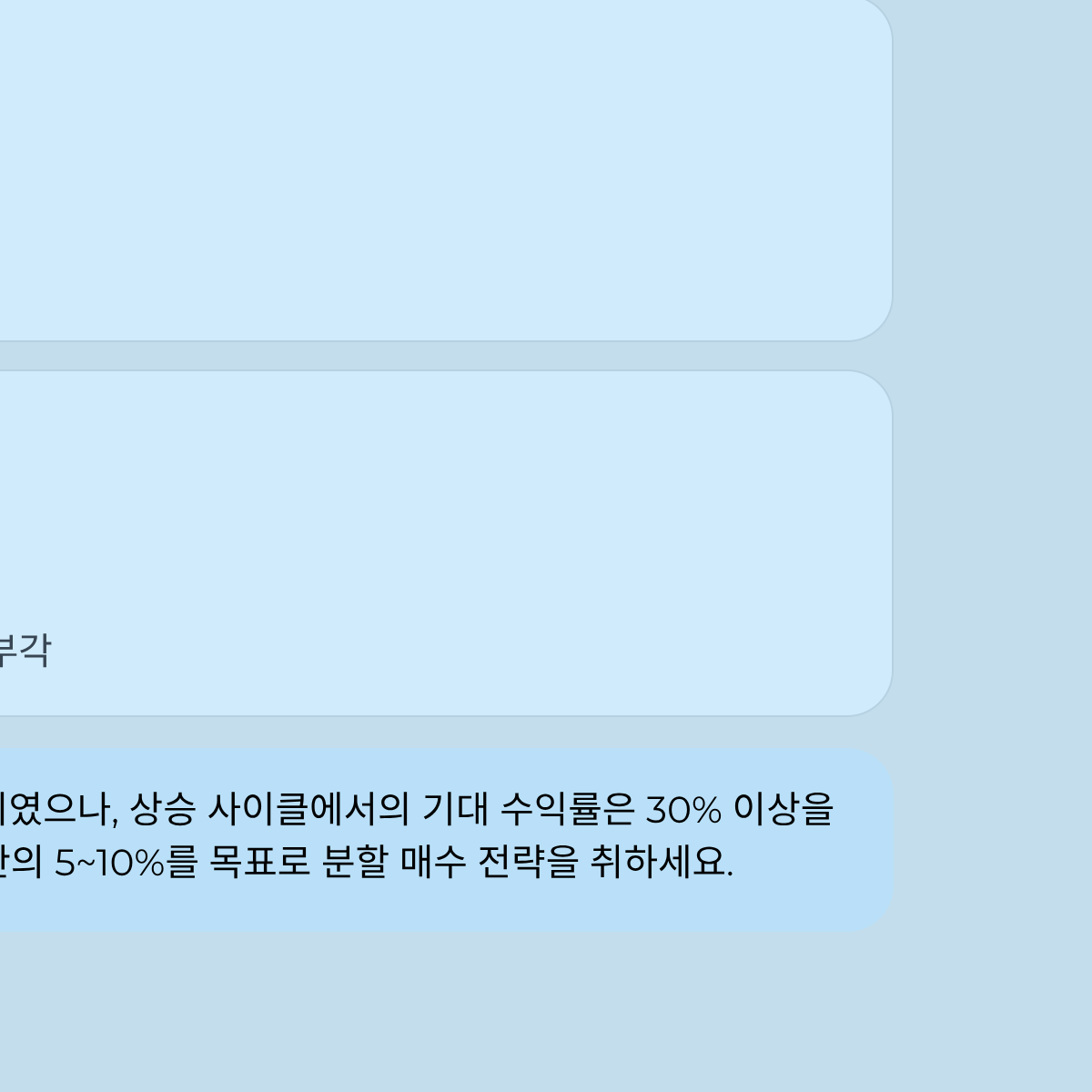 - 실전 적용 팁: 한 번에 몰빵하기보다는 전체 자산의 5~10%를 목표로 분할 매수(Dollar Cost Averaging) 전략을 취하세요.