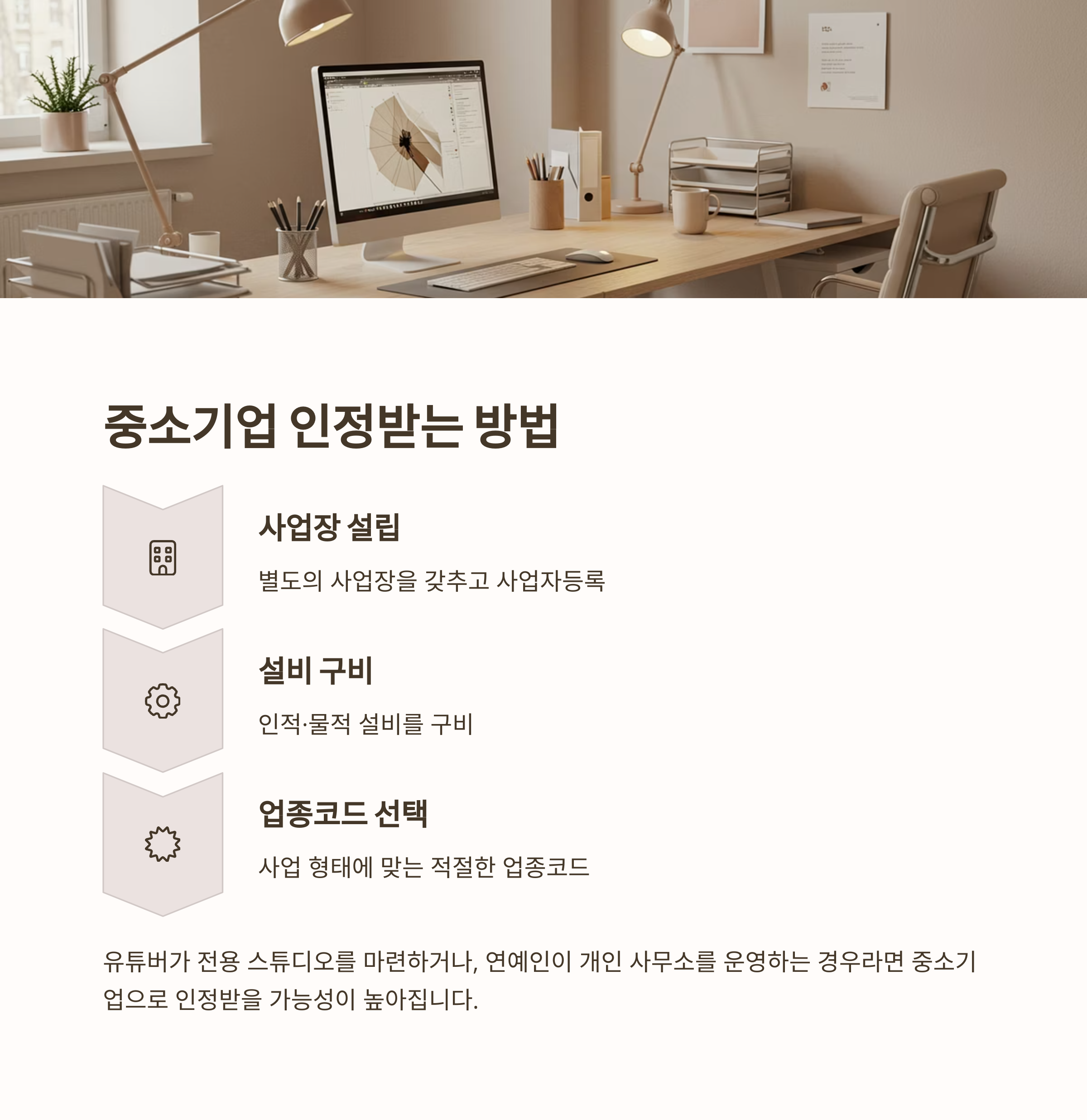 만약 별도의 사업장을 갖추고 사업자등록을 하며, 인적·물적 설비를 구비한다면 중소기업으로 인정받을 가능성이 높아집니다. 예를 들어: