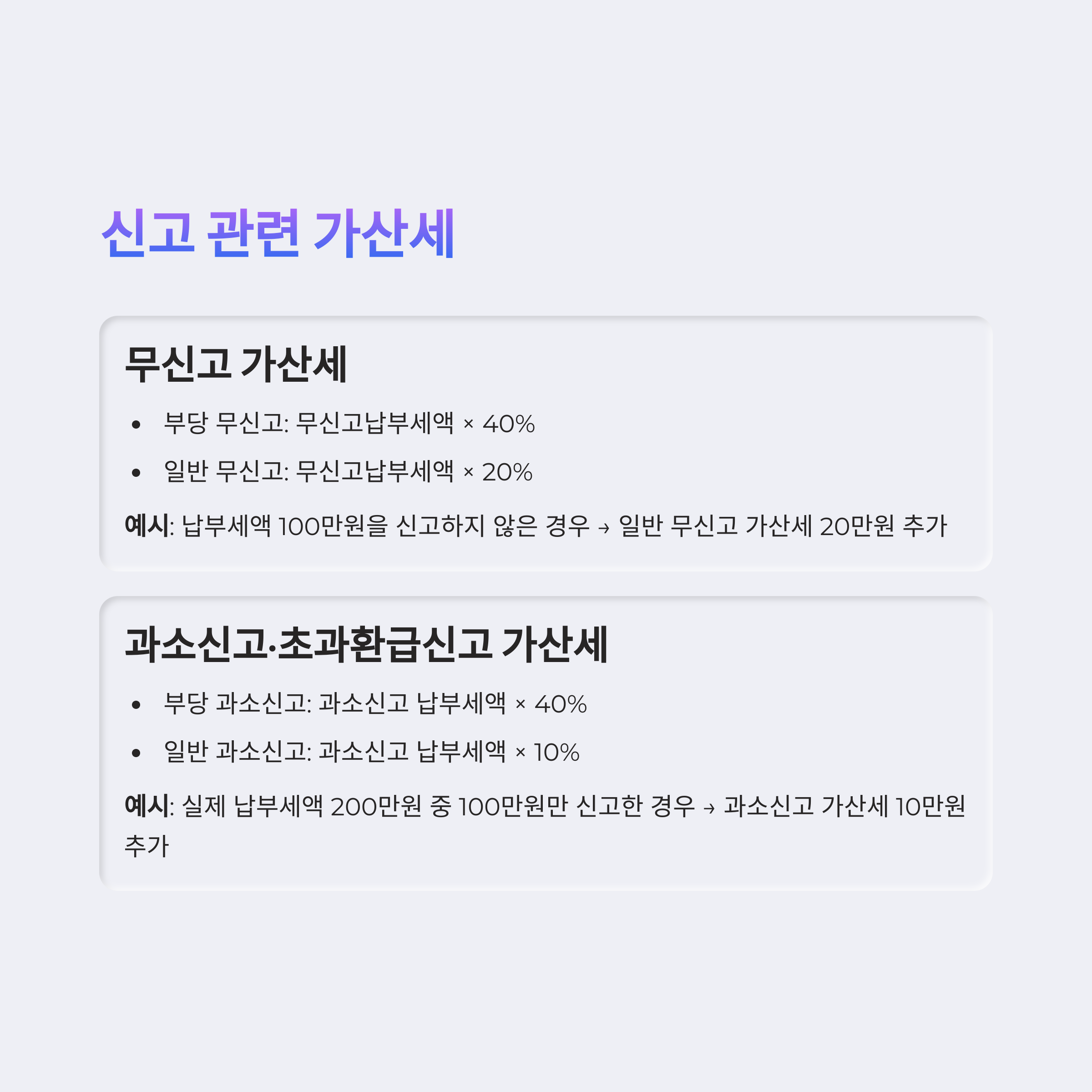 예시: 납부세액 100만원을 신고하지 않은 경우 → 일반 무신고 가산세 20만원 추가