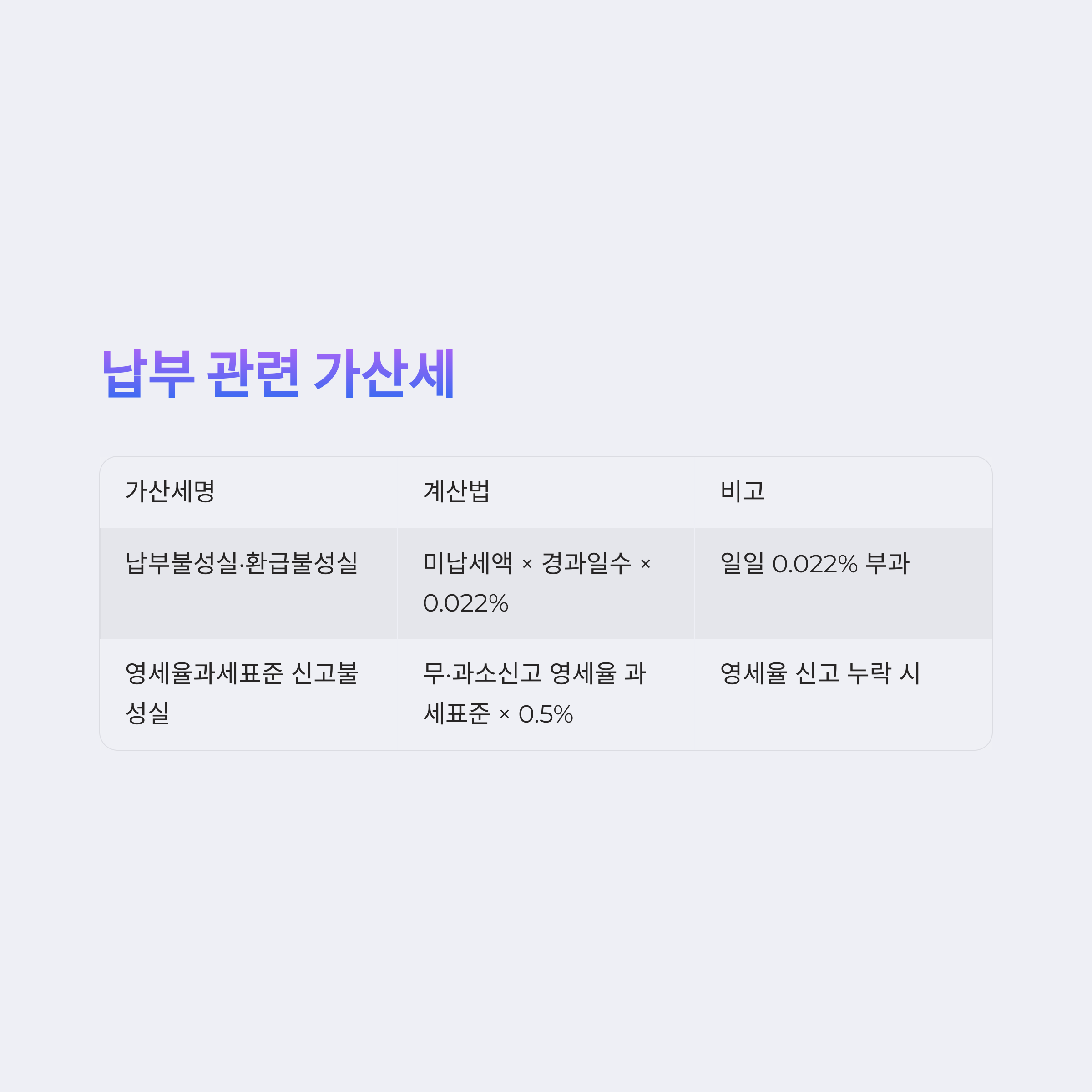 ✅ 무신고·과소신고·납부불성실 등 주요 가산세 세율