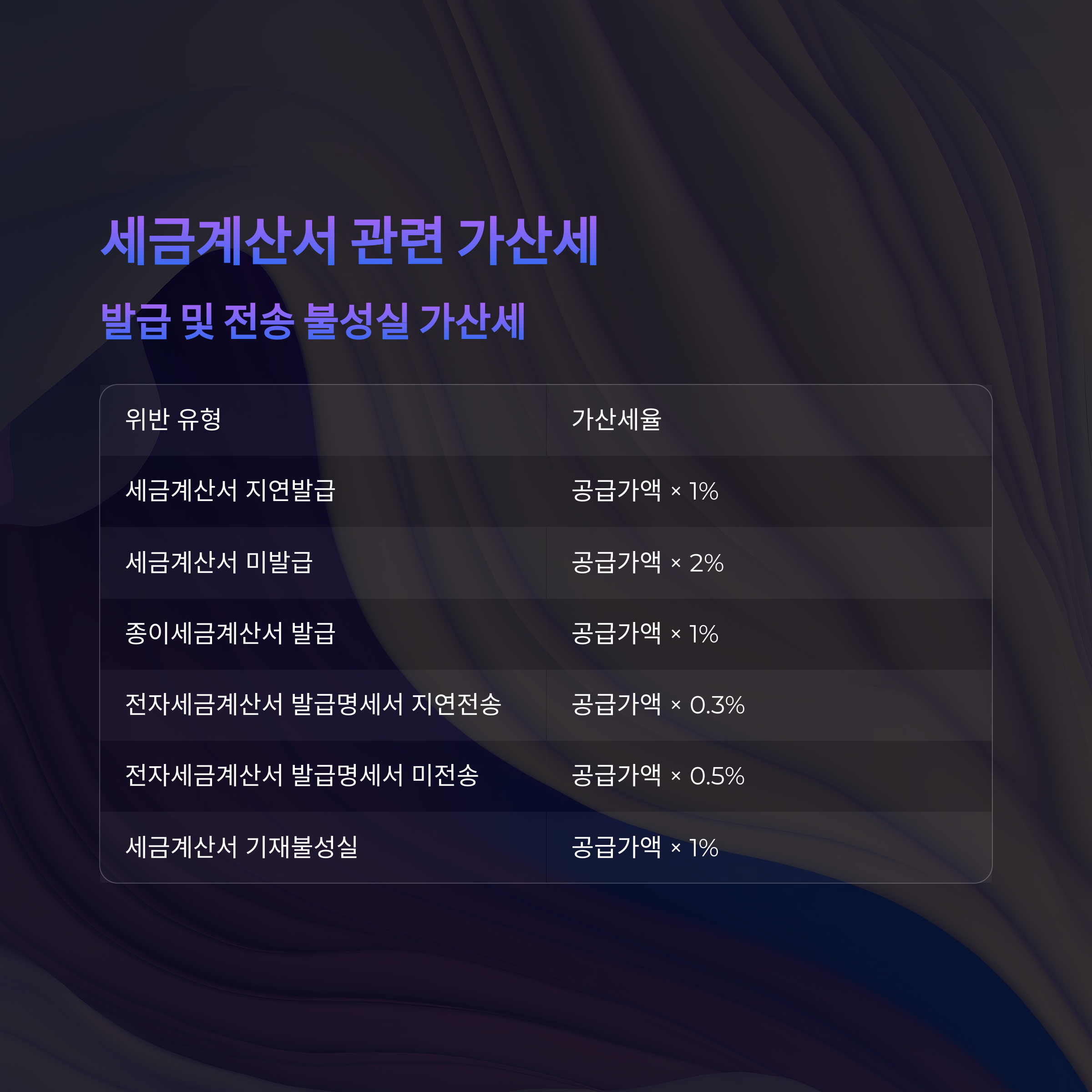 | 세금계산서 지연발급 | 공급가액 × 1% |