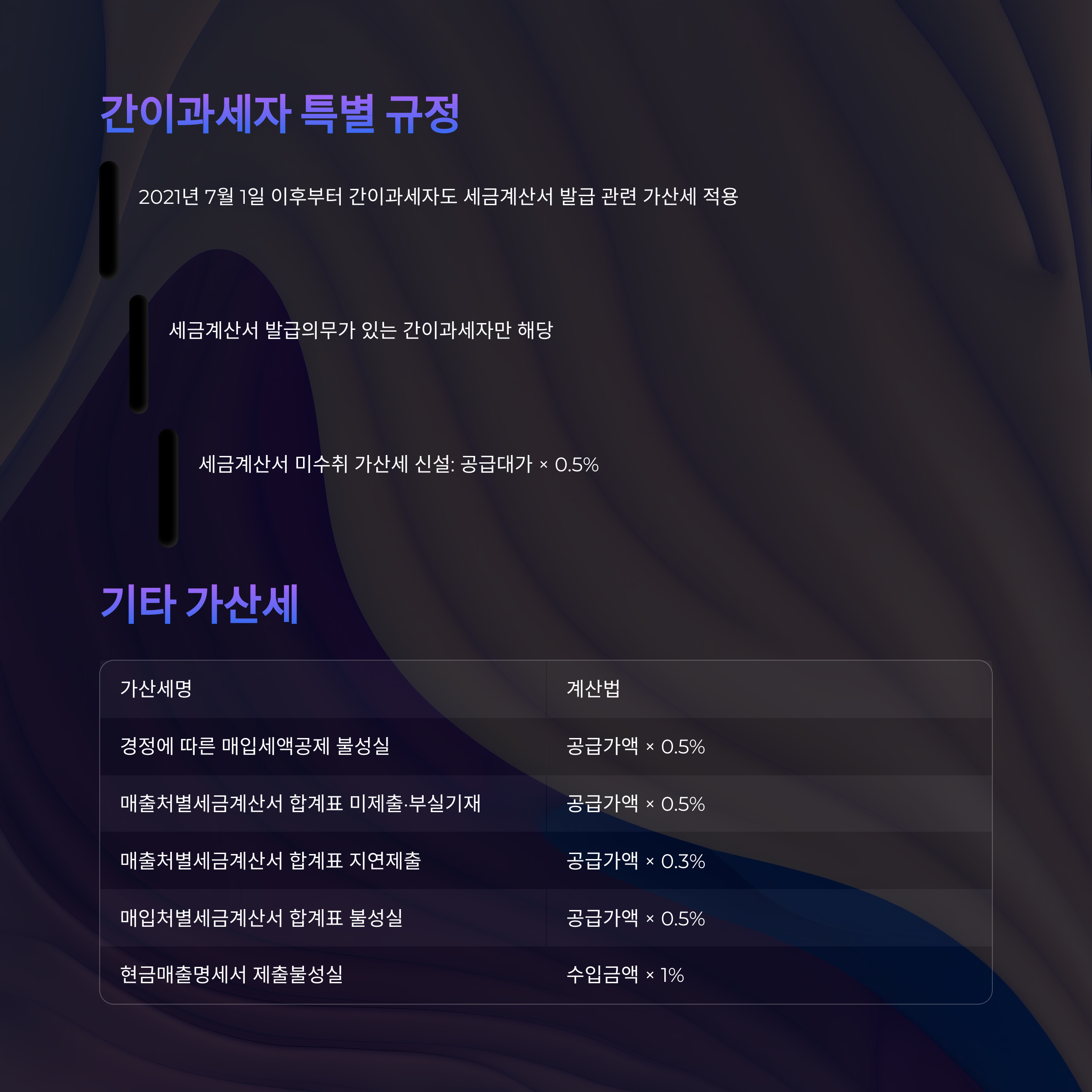• 2021년 7월 1일 이후부터 간이과세자도 세금계산서 발급 관련 가산세 적용