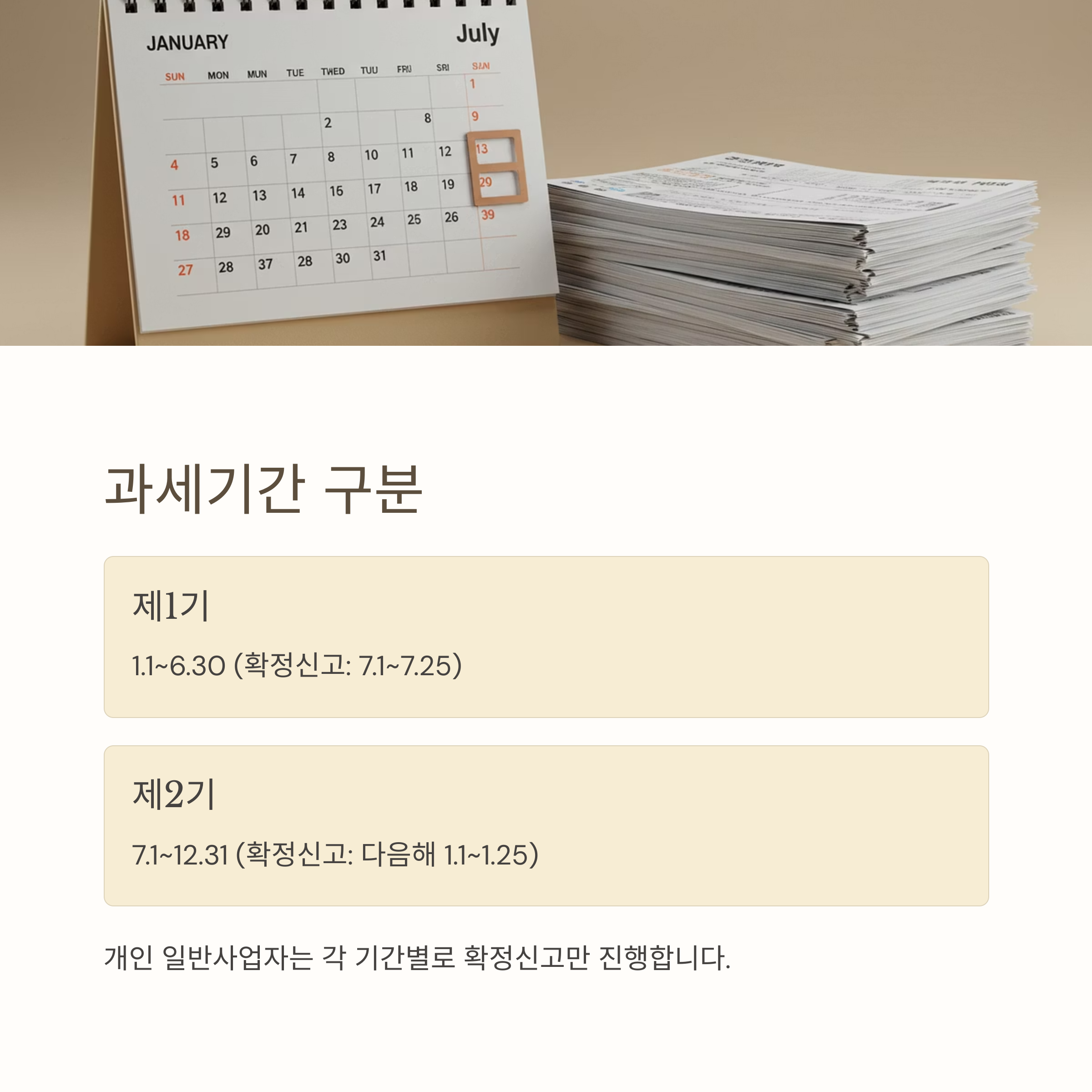 | 확정신고 (7.1~12.31) | 다음해 1.1~1.25 | 개인 일반사업자 |