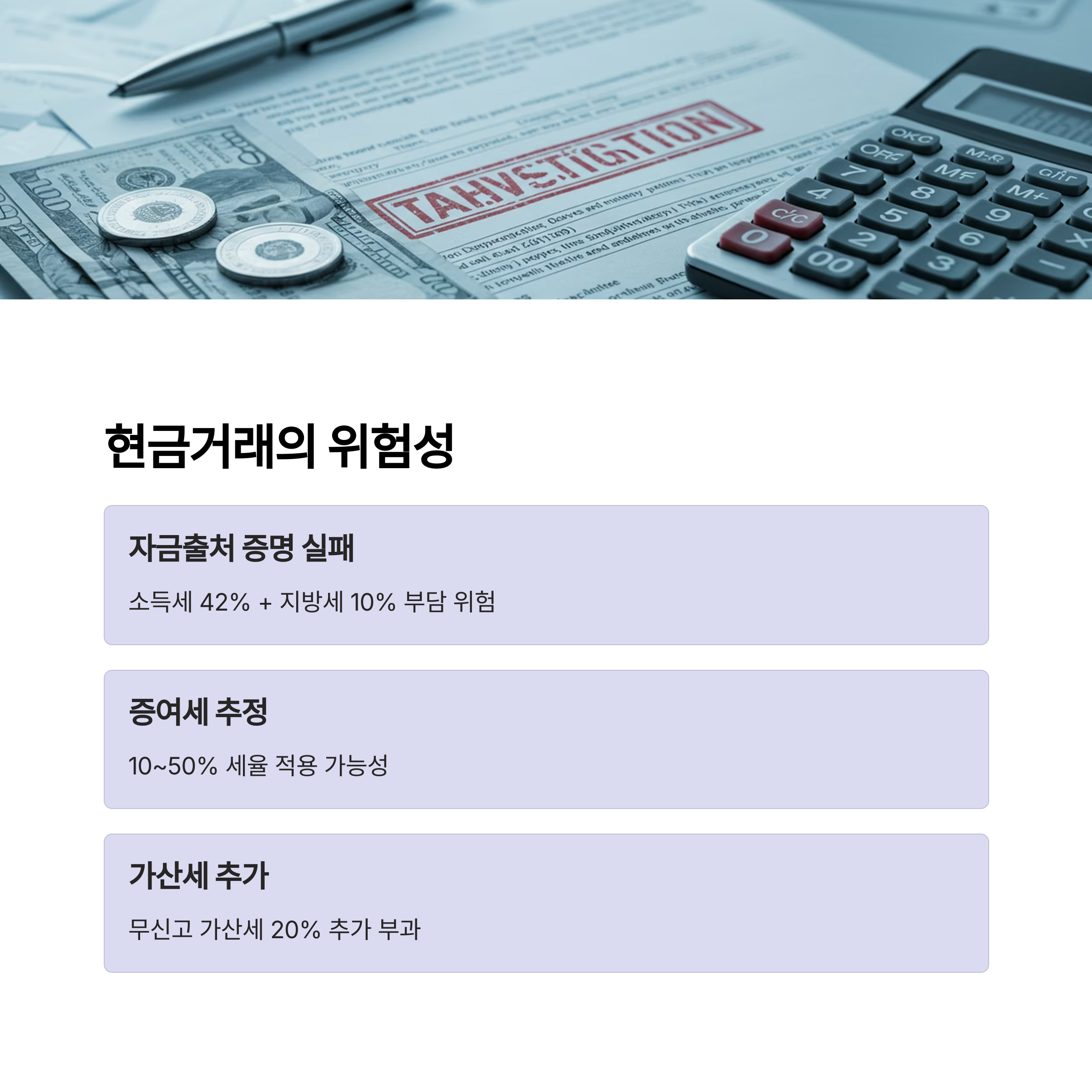 많은 분들이 "현금으로 거래하면 더 유리하다"고 생각하지만, 실제로는 자금출처를 제대로 증명하지 못해 예상치 못한 세금 폭탄을 맞는 경우가 있습니다. 하지만 미리 알고 준비하면 충분히 안전하게 현금거래를 할 수 있어요. 법적 기준과 세무 리스크, 현명한 대처법을 정확히 알아두시면 됩니다.
