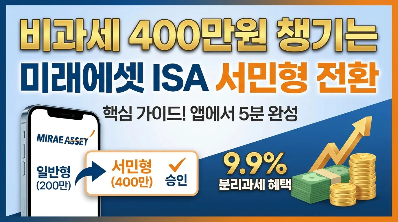 비과세 400만원 챙기는 미래에셋 ISA 서민형 전환 핵심 가이드!