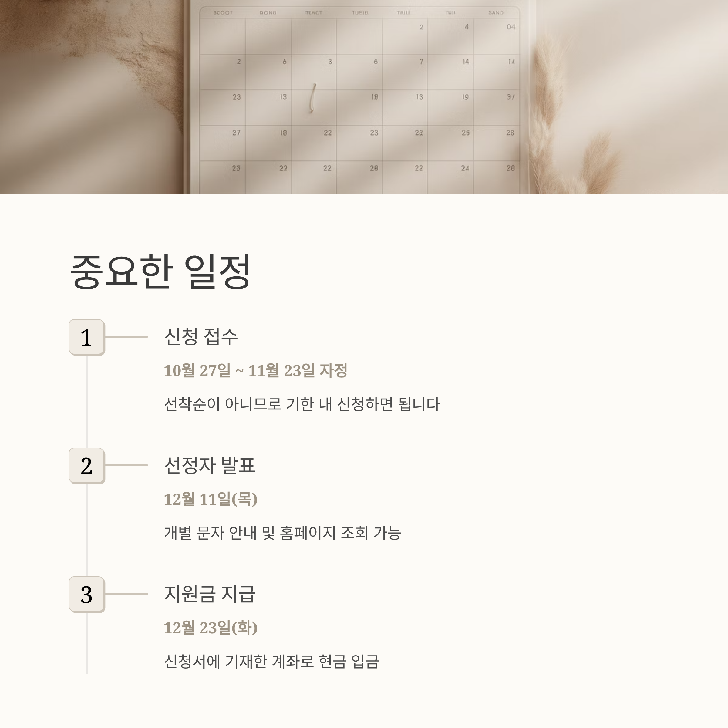 2025년 신청 접수 기간은 10월 27일(월)부터 11월 23일(일) 자정까지입니다.