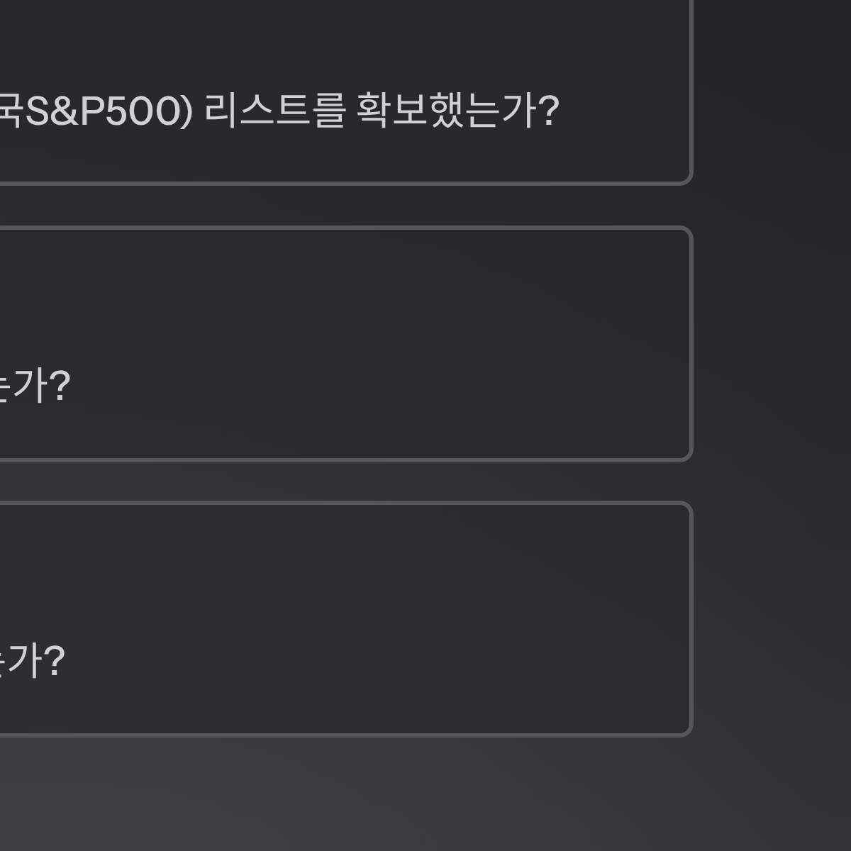 - [ ] 국내 상장 해외 지수 ETF(예: TIGER 미국S&P500) 리스트를 확보했는가?