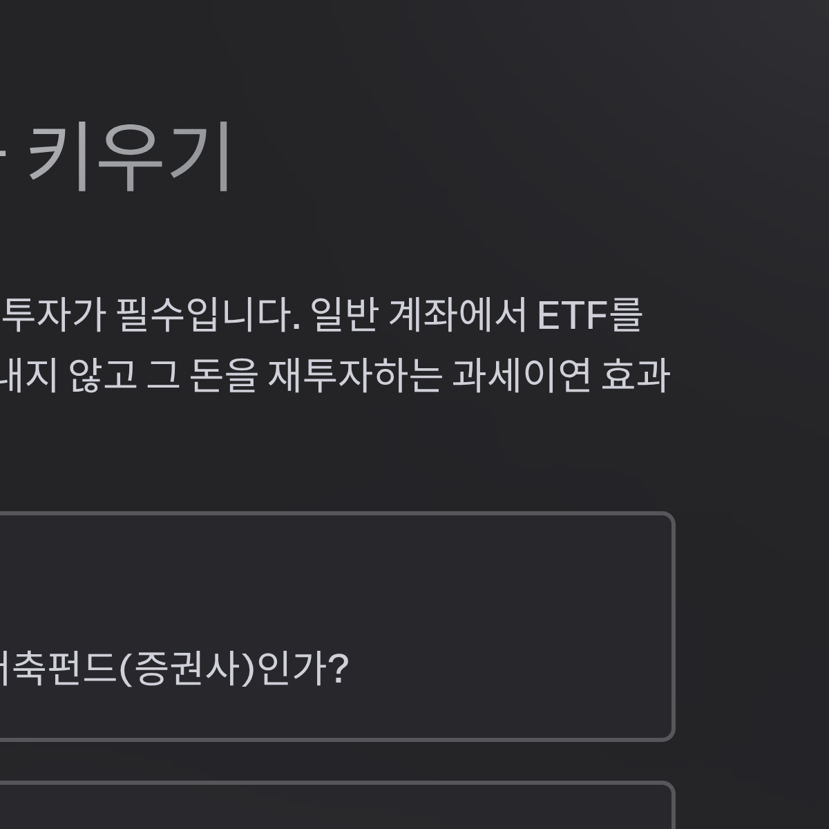 - [ ] 직접 ETF(상장지수펀드) 등을 통해 자산 배분을 하고 싶은가?