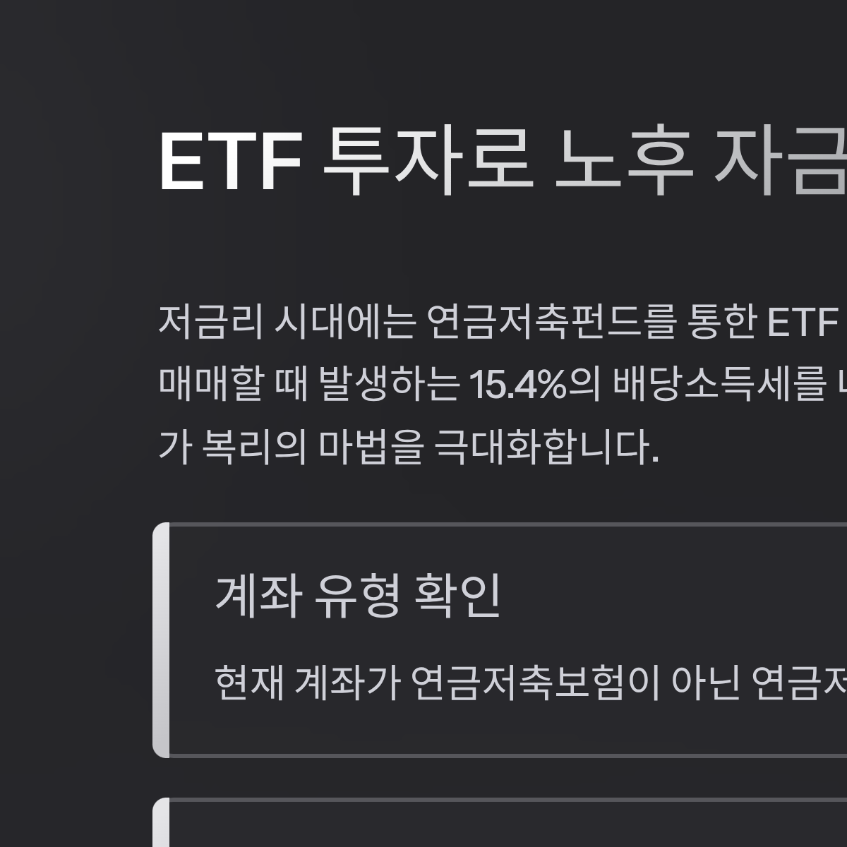 단순 저축을 넘어 ETF 투자로 노후 자금의 체급을 키우는 법
