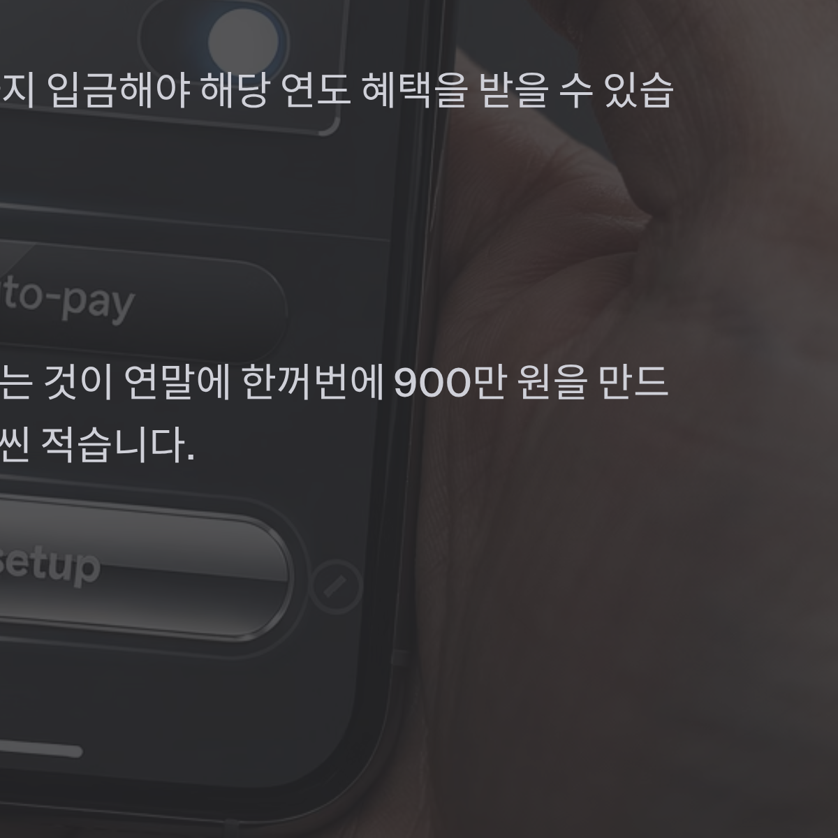 * 만약 연말에 급하게 돈을 넣어야 한다면, 12월 31일 은행 영업시간 종료 전까지 입금해야 해당 연도 혜택을 받을 수 있습니다.