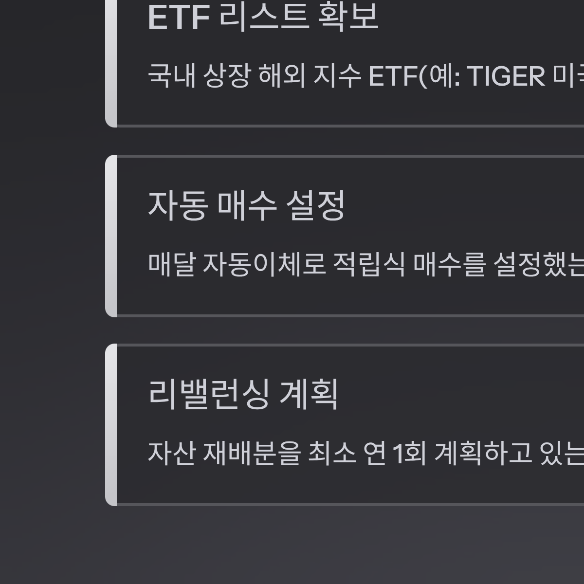 - [ ] 매달 자동이체로 '적립식 매수'를 설정했는가?