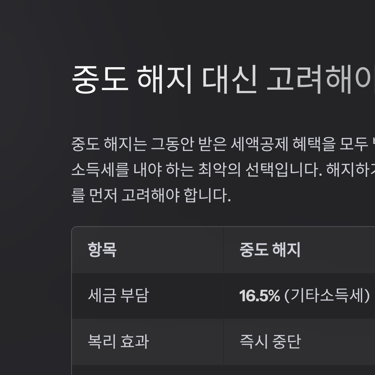 16.5% 세금 폭탄을 부르는 중도 해지 대신 고려해야 할 대안