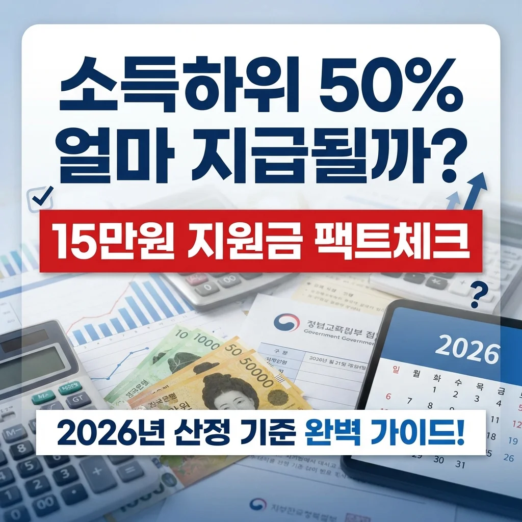 소득하위 50% 얼마 지급될까? 15만원 지원금 팩트체크와 2026년 산정 기준 완벽 가이드!
