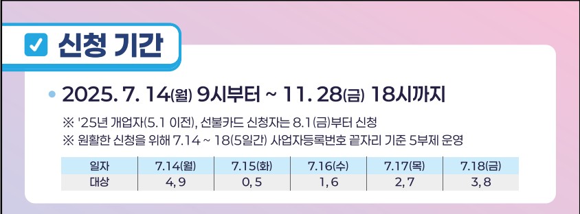 - 2025년 5월 1일 이후 개업자는 8월 1일부터 신청 가능