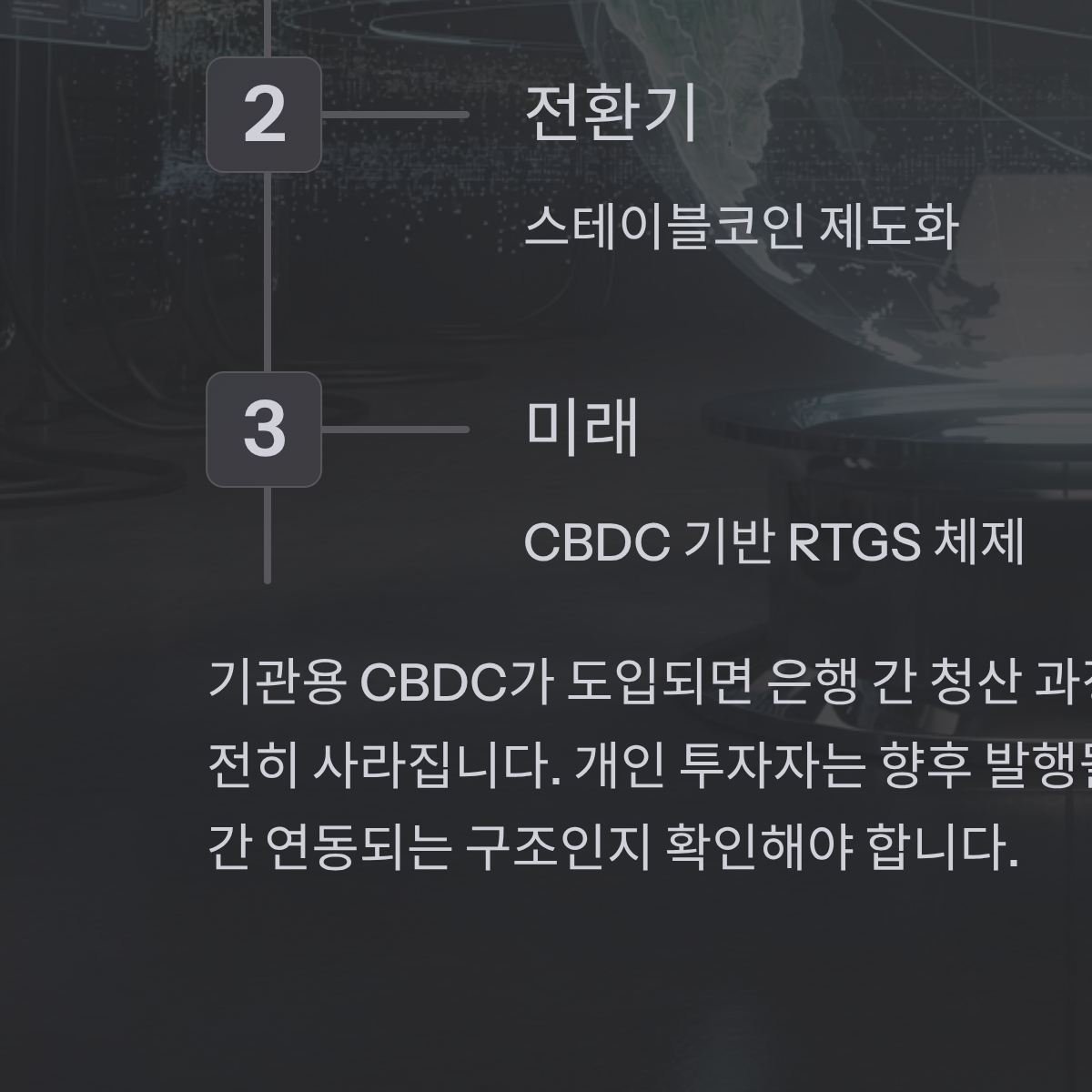 * 개인 투자자라면 향후 발행될 스테이블코인이 '기관용 CBDC'와 실시간 연동되는 구조인지 확인하는 것이 자산 안전성을 판단하는 척도가 될 것입니다.