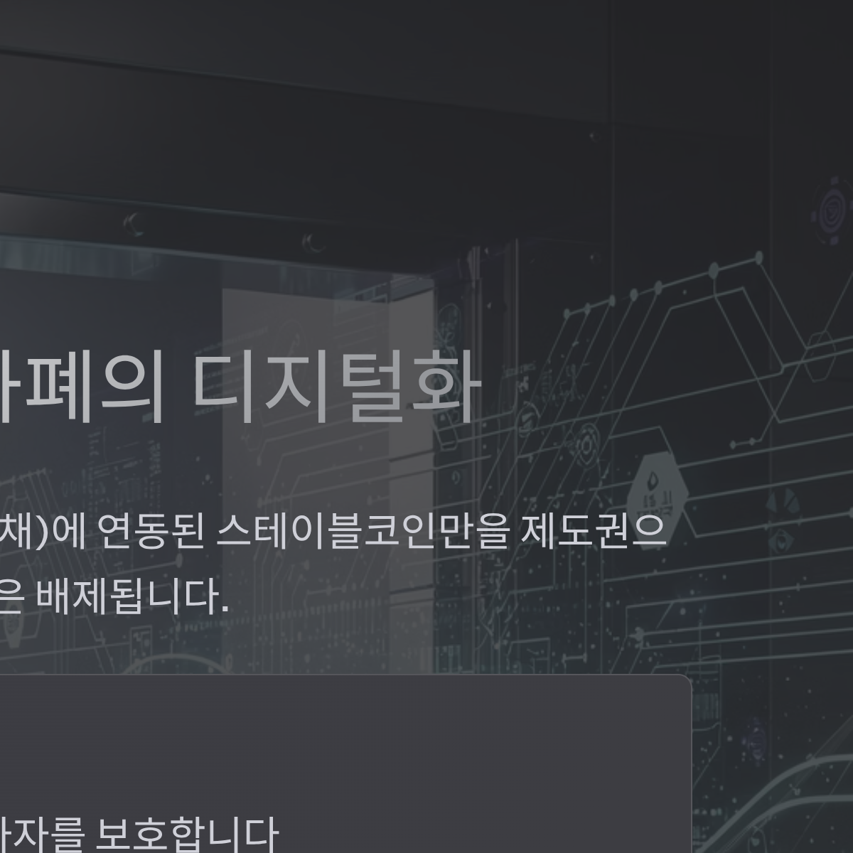 * 스테이블코인 담보 비율: 발행액의 최소 100% 이상 (현금 및 국채 한정)