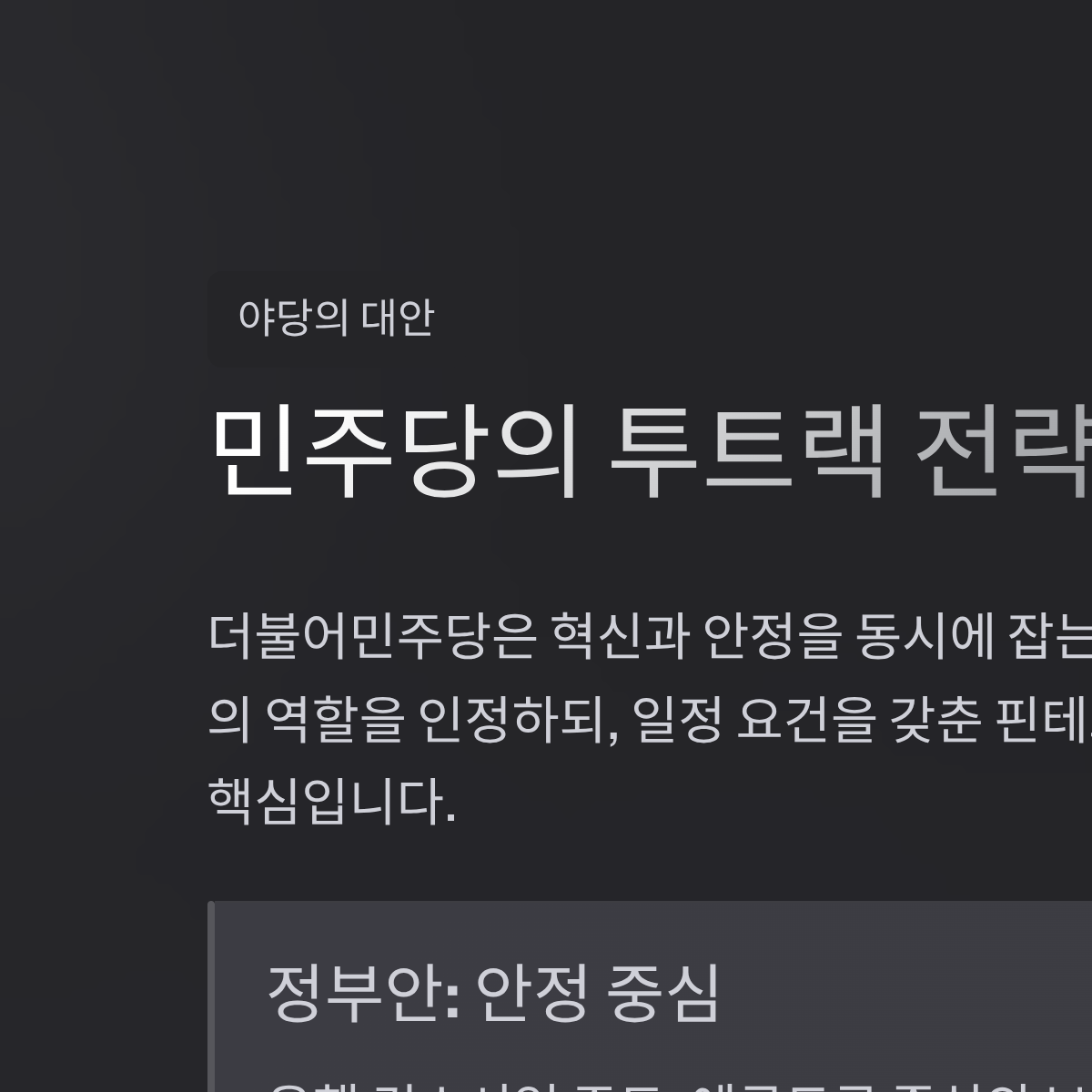민주당의 투트랙 카드, 정부안을 보완할 야당의 입법 방향