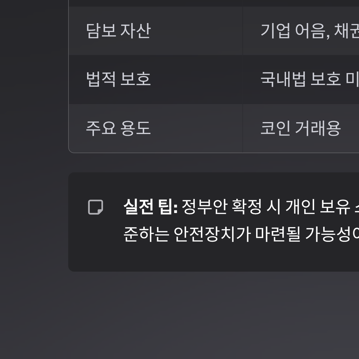 * 실전 팁: 향후 정부안이 확정되면, 개인이 보유한 스테이블코인에 대해서도 일정 부분 예금자 보호에 준하는 안전장치가 마련될 가능성이 큽니다.