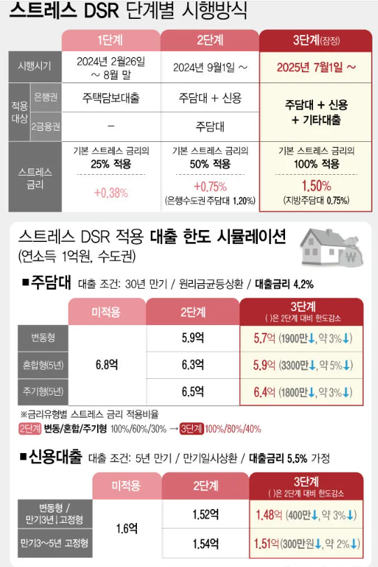 스트레스 DSR은 3단계에 걸쳐 점진적으로 시행되어 2025년 7월 완전 도입됩니다.
