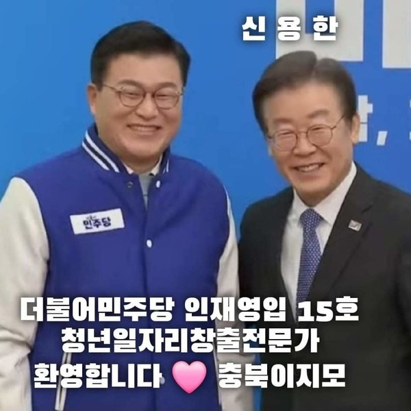 신용한은 오랜 기간 보수 진영에서 활동했으나 2024년 민주당에 인재로 영입되며 정치적 전향을 했다. 청주를 기반으로 청년 일자리, 경제정책, 지방 균형 발전을 강조해왔던 그는 "청주의 아들"이라는 정체성을 바탕으로 충북지사 후보군에도 꾸준히 거론되고 있다.그가 민주당으로 옮긴 배경에는 윤석열 정부에 대한 실망과 박근혜 정부 당시 경험한 ‘정치적 트라우마’가 있었다고 밝힌 바 있다. 특히 그는 보수 정치의 기득권 문화를 비판하며 “청년과 지역을 위한 새로운 길은 민주당 내에서 열겠다”라는 입장을 천명했다.