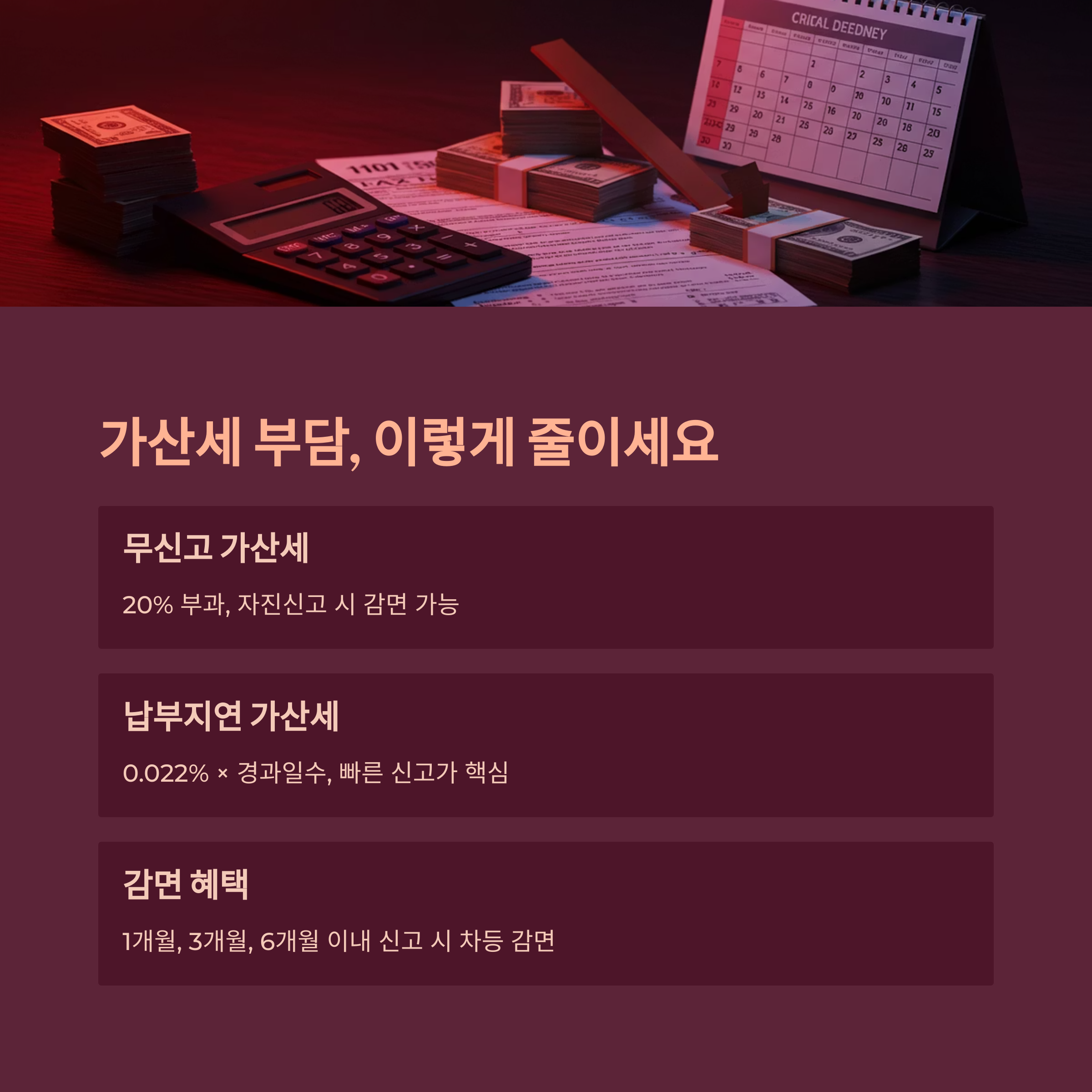 - 1. 신고는 최대한 빨리! - 1개월, 3개월, 6개월 이내 자진신고 시 가산세 감면 혜택 적용