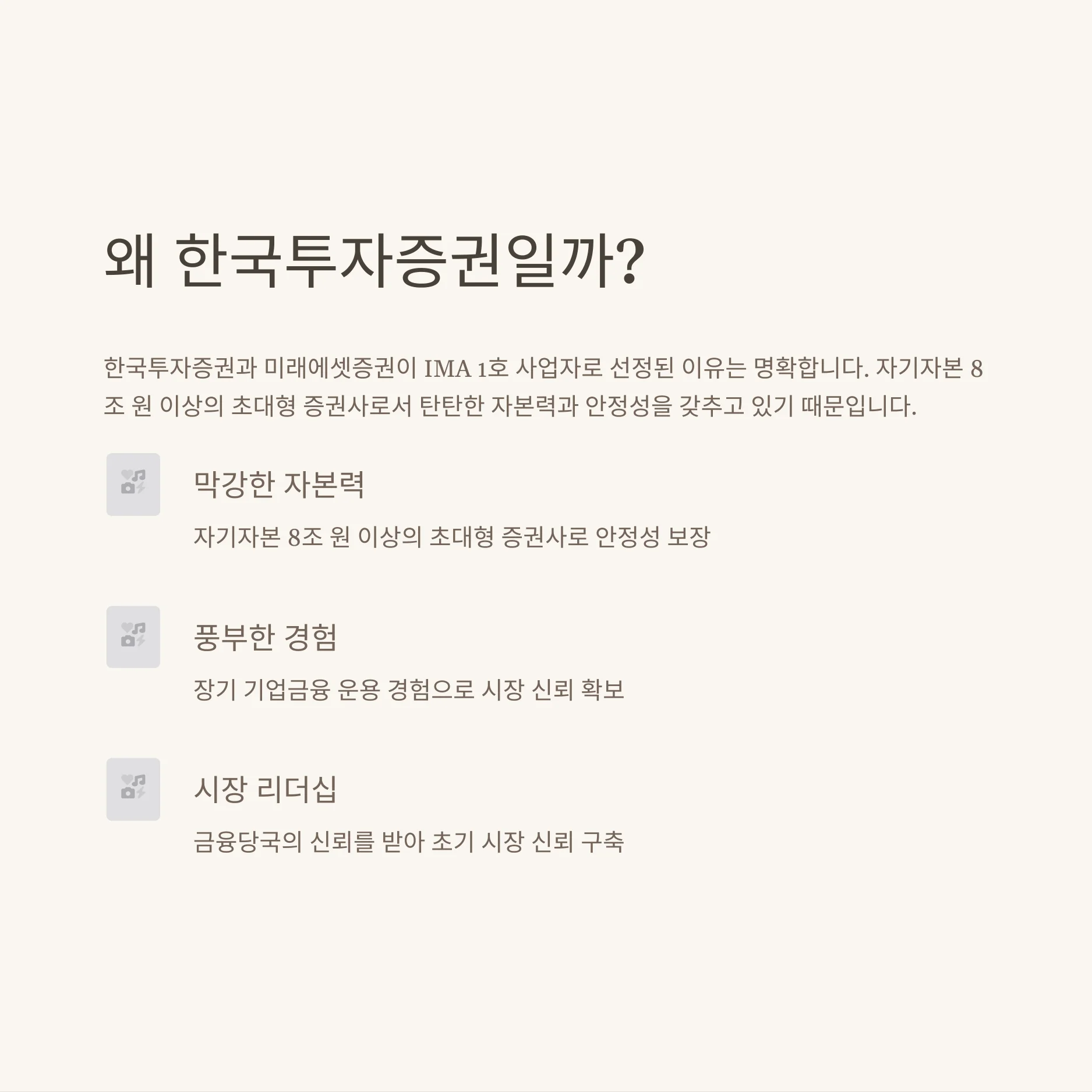한국투자증권, 미래에셋 IMA 1호 사업자 선정 이유: 자본력, 안정성, 시장 신뢰 확보 전략