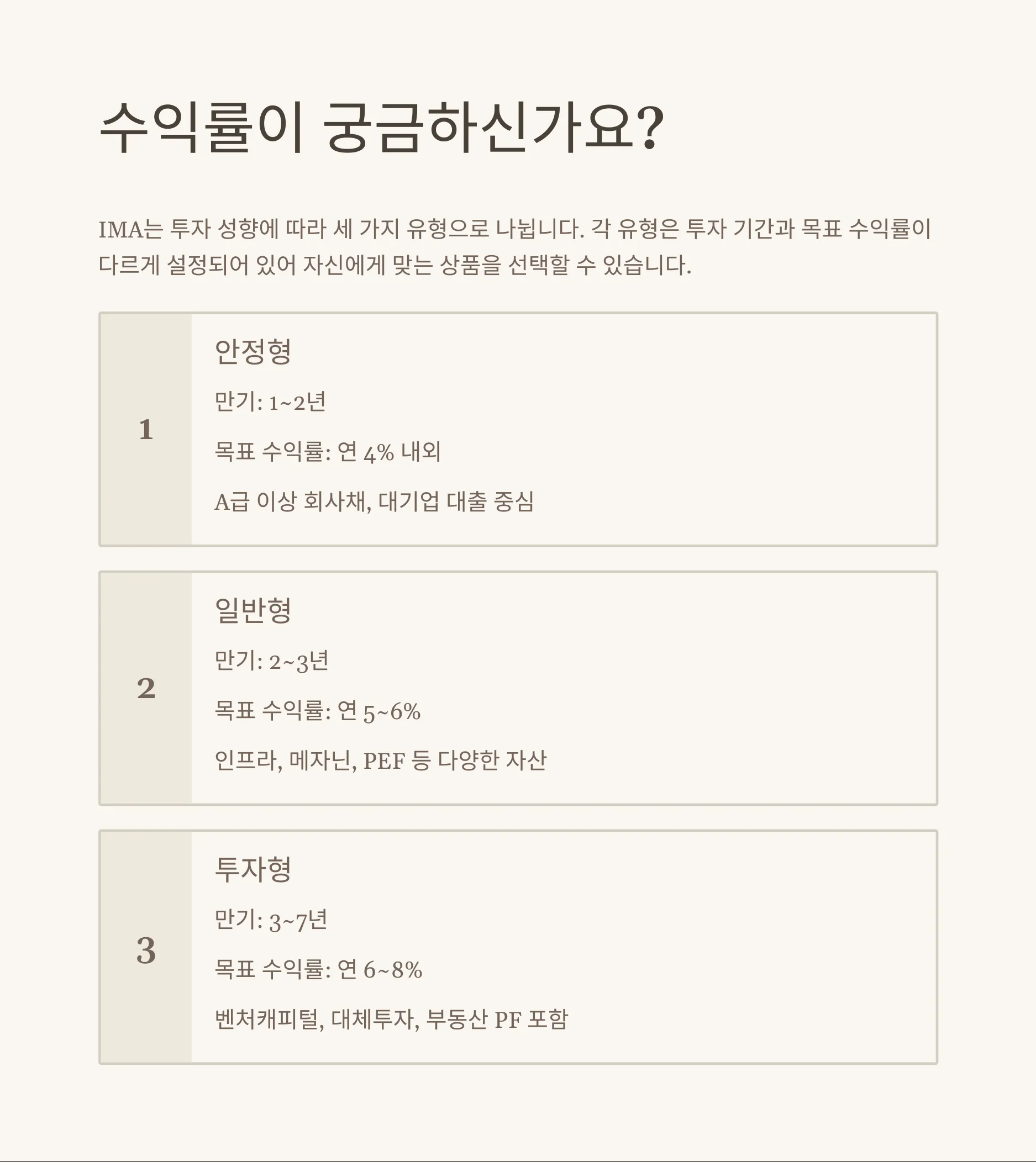 Q: IMA 상품의 안정형 수익률은 어떻게 되나요?