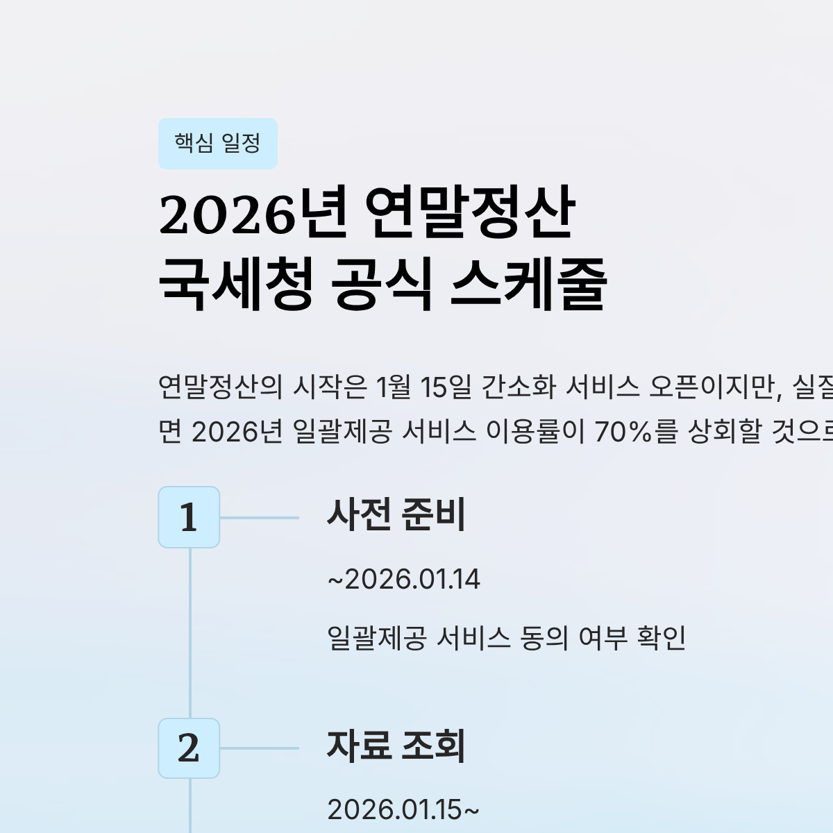 | 사전 준비 | ~ 2026.01.14 | 일괄제공 서비스 동의 | 회사가 일괄제공 서비스를 도입했는지 확인 |