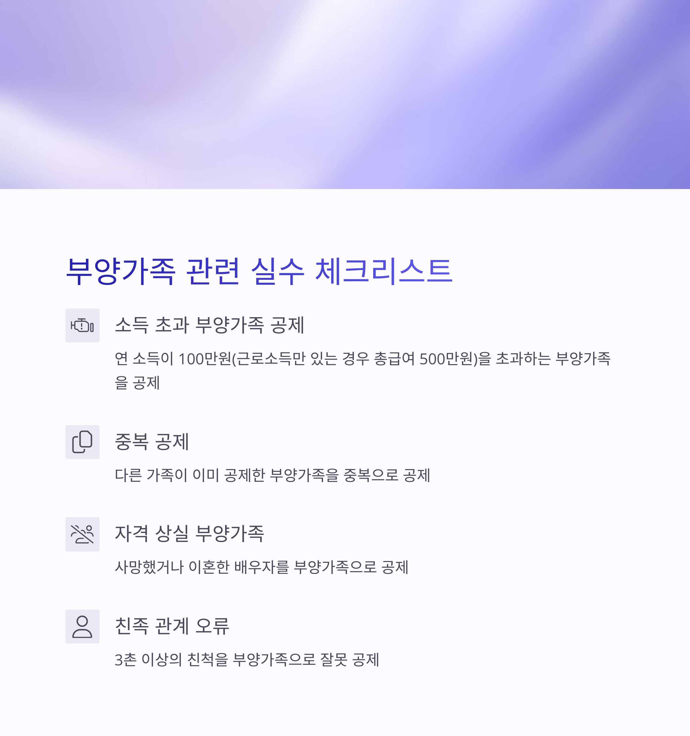 • 3촌 이상의 친척을 부양가족으로 잘못 공제